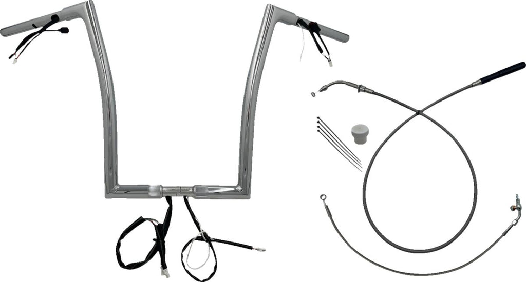 1-1/4" EZ Install Flat Top HandlebarBolt-together two-piece handlebar design that takes up half the shelf space, is easy to ship and even faster to install CNC mandrel-bent from 1-1/4" diameter x .120" wall heavy tube EZ install means no more need to fight internal wiring; with our handlebars you can install wiring in minutes Bar with "squared" lower bend has additional slots to ease wire routing Knurled and notched for TBW applications Made in the USA Accepts OEM heated grips. Wired for your handlebar controls.