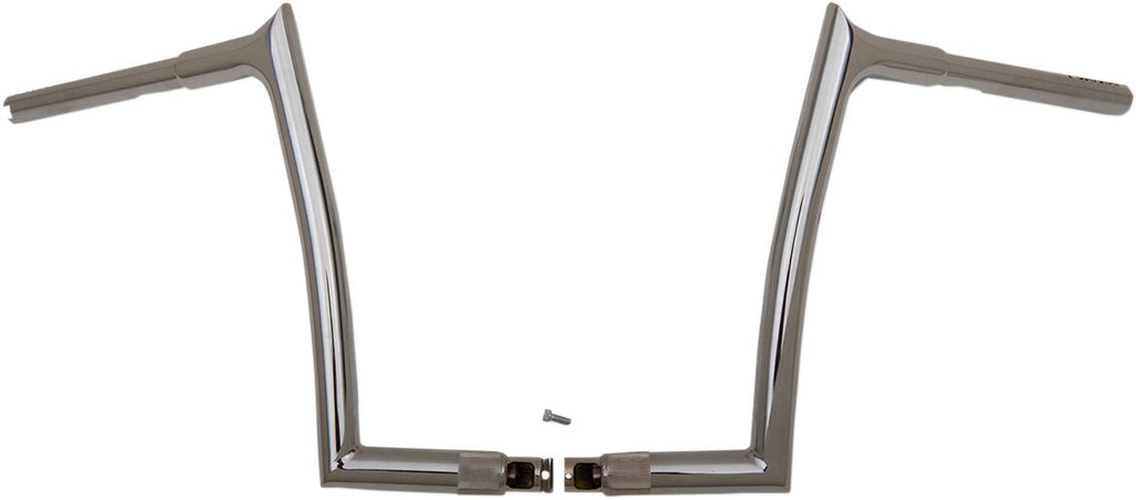 1-1/4" EZ Install Pointed Top HandlebarBolt-together two-piece handlebar design that takes up half the shelf space, is easy to ship and even faster to install CNC mandrel-bent from 1-1/4" diameter x .120" wall heavy tube EZ install means no more need to fight internal wiring; with our handlebars you can install wiring in minutes Features a billet machined top with a large internal machined radius that allows for EZ pulling of wiring (non-welded top corner) Bar with "squared" lower bend has additional slots to ease wire routing Knurled and notched for TBW applications Made in the USA Accepts OEM heated grips.