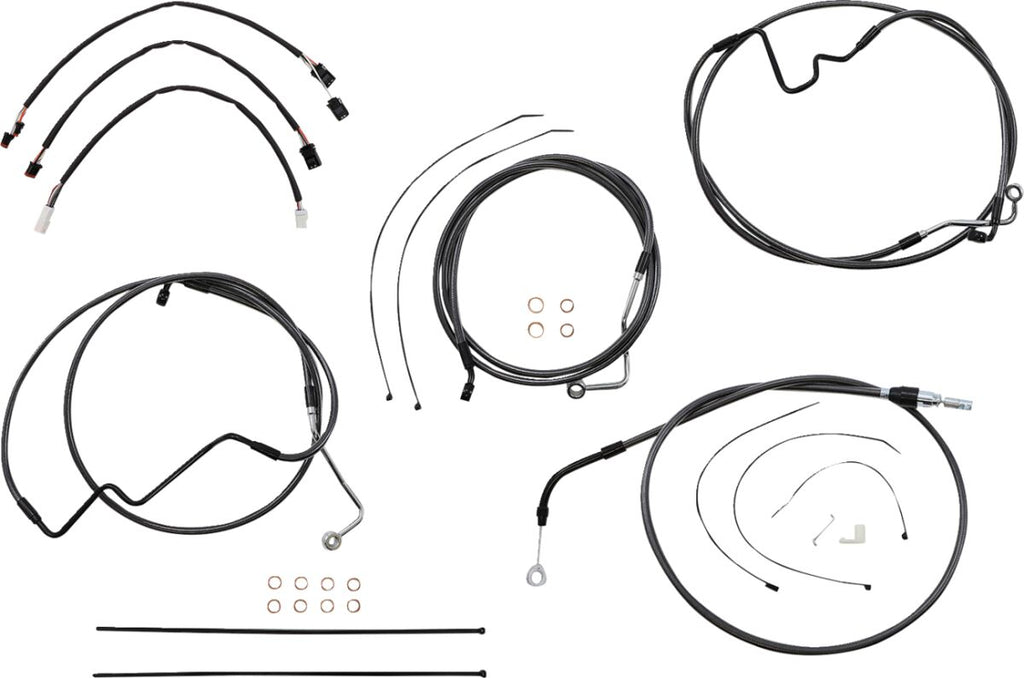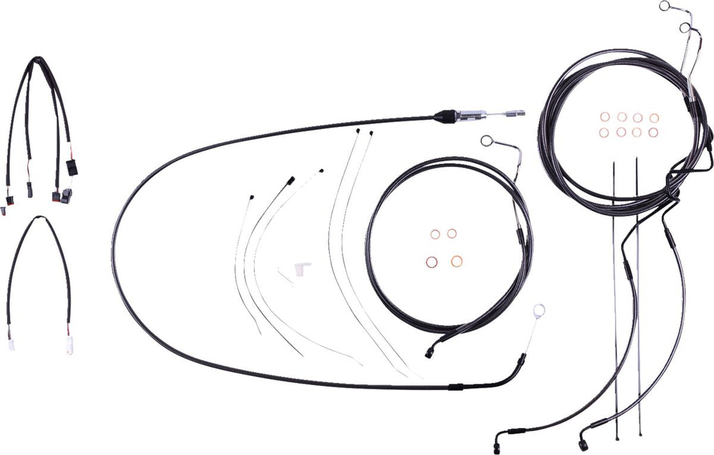 Black Pearl™ Designer Handlebar Installation KitThe only complete kit with matching braided cables and brake lines Kit includes throttle and idle cables of throttle-by-wire extensions, clutch cable or hydraulic clutch line, brake lines, copper crush washers, hardware, and any necessary switch wiring of turn signal extension All cables are a low-effort, high-efficiency design that meets or exceeds all OE specifications for fitment, construction, endurance Kit for dual disc models includes an all brazed manifold that eliminates leaks, alignment problems and unattractive threaded connections Assembled in the U.S.A. Kit is based on using ape hanger style handlebars with 2” risers. Harley Davidson FLH 1868 ABS 2021 Harley Davidson FLHT 1750 ABS 2021-2022 Harley Davidson FLHTK 1868 ABS 2021-2024 Harley Davidson FLHTKSE 1923 ABS 2021 Harley Davidson FLHX 1750 ABS 2021-2023 Harley Davidson FLHXS 1868 ABS 2021-2023 Harley Davidson FLHXSE 1923 ABS 2021-2022 Harley Davidson FLHXSE 1977 ABS 2023-2024 Harley Davidson FLHXST 1923 ABS 2022-2023