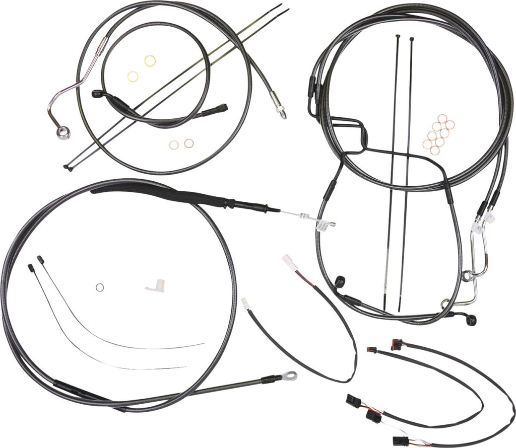 • Kit includes throttle and idle cables of throttle-by-wire extensions, clutch cable or hydraulic clutch line, brake lines, copper crush washers, hardware, and any necessary switch wiring of turn signal extension