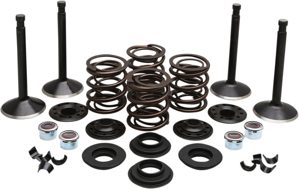 Engine Valve KitKits include KPMI® or equivalent valve spring kit, a full set of Black Diamond™stainless steel standard size valves and are black nitride coated, H.T. (Heat Treated) steel valve keepers and valve stem seals (where applicable) for engine applications listed Black Diamond™ valves are one piece forged stainless steel that are fortified by a special German process to improve wear properties and reduce friction White Diamond® valves are CNC machined from one-piece forging of either EV8 stainless steel or Inconel-751 and are hard chromed with 360° anode to produce a hard chrome finish Compatible with leaded and unleaded fuels Sold as complete kit for one engine Made in the USA Kit Includes: