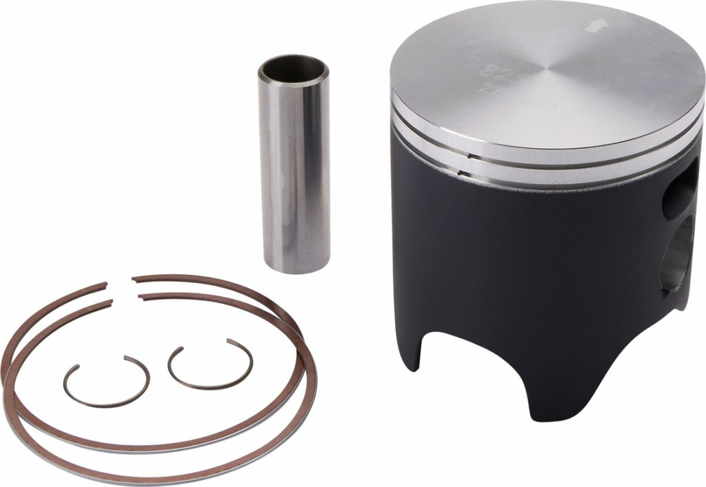 Piston Kit for 2 StrokePistons made are with high quality, permanent skirt coating to reduce friction and piston rock for quiet and improved performance Optimized machining for lightness, as well as maintained strength in key areas such as crown and skirt wall cross section Forged from aerospace grade aluminum alloy Piston kit includes piston, rings, pin and clips Kit Includes: