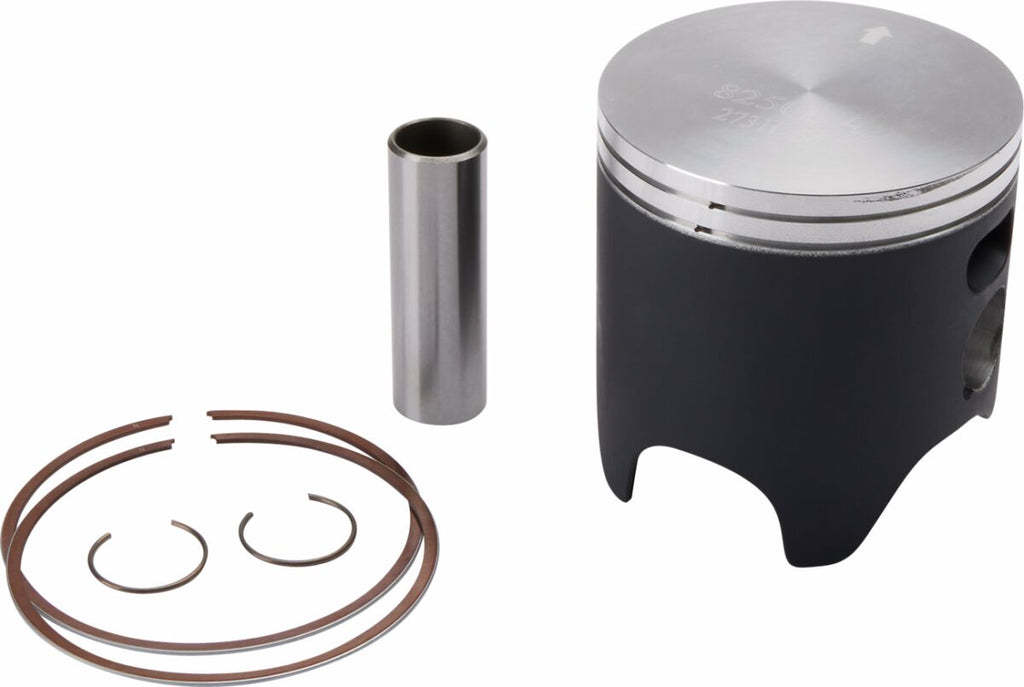 Piston Kit for 2 StrokePistons made are with high quality, permanent skirt coating to reduce friction and piston rock for quiet and improved performance Optimized machining for lightness, as well as maintained strength in key areas such as crown and skirt wall cross section Forged from aerospace grade aluminum alloy Piston kit includes piston, rings, pin and clips Kit Includes: