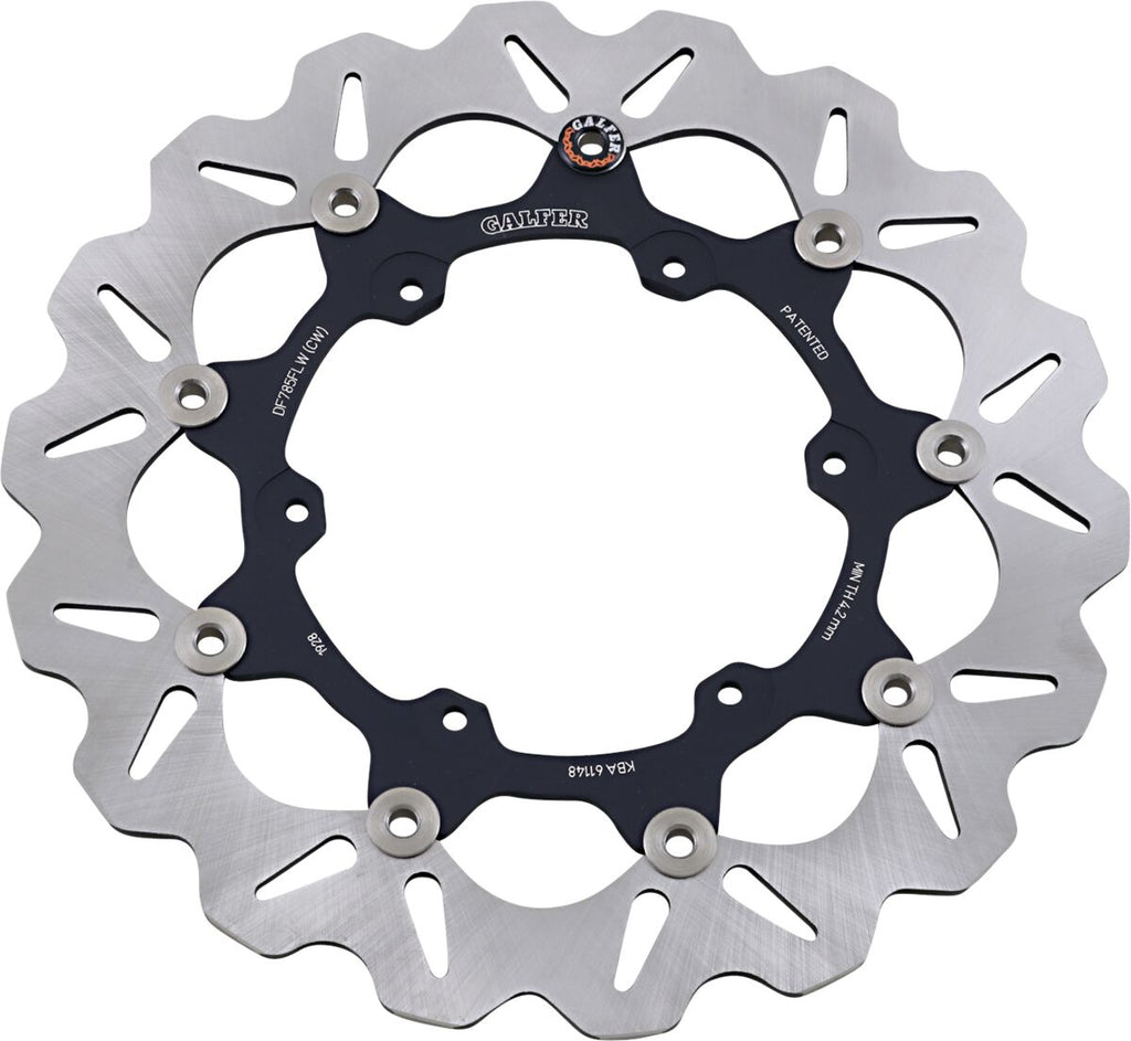Wave® RotorLaser-cut double disc ground 420 high carbon stainless steel Direct-replacement brake rotors; do not require any extra parts, bolt on just like a stock brake disc Full-floating design rotors have an aluminum center carrier Improves brake lever feel and modulation Rotors cool as they rotate to lower brake operating temperatures Design is self-cleaning, removes water as it rotates Less tendency to warp Manufactured in Spain For maximum braking performance and rotor longevity, Galfer recommends using Galfer brake pads with Galfer rotors. KTM ADVENTURE 1050 ABS 2015-2016 KTM ADVENTURE 1090 ABS 2017-2018 KTM ADVENTURE 1090 L ABS 2018 KTM ADVENTURE 1090 R ABS 2017-2018 KTM ADVENTURE 1190 ABS 2013-2016 KTM ADVENTURE 1190 R ABS 2013-2016 KTM SUPER ADVENTURE 1290 ABS 2015-2016 KTM SUPER ADVENTURE 1290 R ABS 2017-2023 KTM SUPER ADVENTURE 1290 S ABS 2017-2023 KTM SUPER ADVENTURE 1290 T ABS 2017