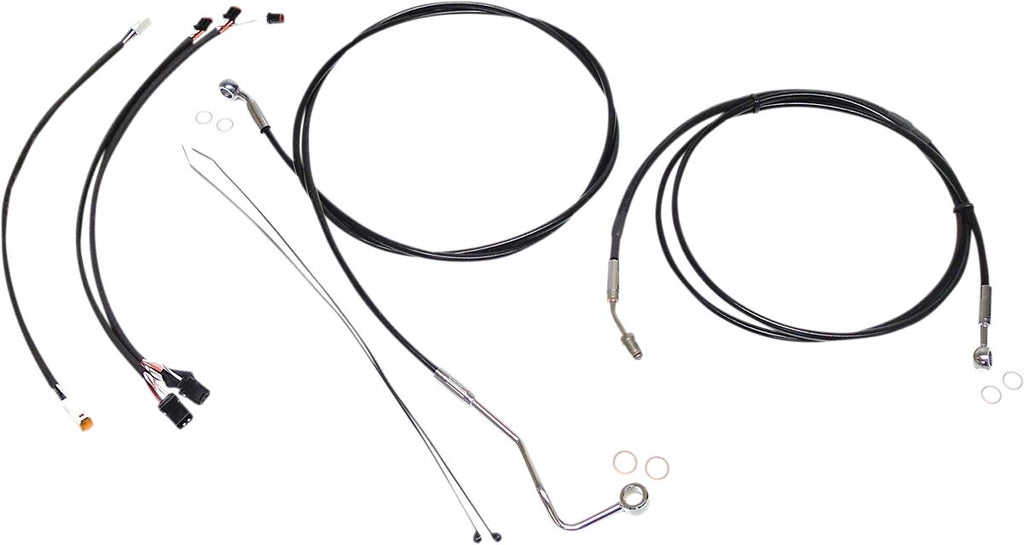XR Handlebar Installation KitMagnum XR Handlebar Installation Kit offers a great fit and excellent quality at an economical price Kit features highly polished, chrome plated fittings All cables are a low effort, high efficiency design that meets or exceeds all OE specifications for fitment, construction, endurance Magnum XR Brake Lines use an enhanced construction of heavy gauge stainless steel embedded in tough abrasion resistant nylon outer jacket for superior durability and extreme braking response for safe riding The coating on cables and brake lines offers exceptional protection for paint or chrome Kits that include manifolds use an all brazed construction to ensure optimal OE fitment and appearance Manifolds use -3 AN connections for an easy installation Kit includes throttle and idle cables or throttle-by-wire extensions, clutch cable or XR hydraulic clutch line, XR brake lines, copper crush washers, hardware, turn signal and switch wiring extensions Kit is based on using ape hanger style handlebars and 2" risers. Harley Davidson FLHR 1750 ABS 2021-2022