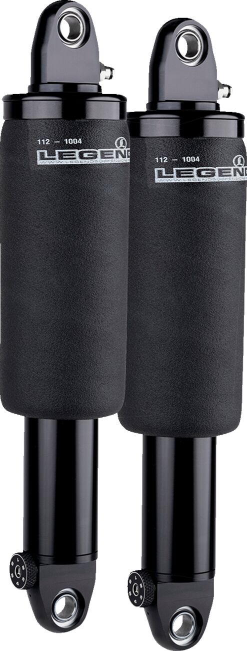 Air-A Adjustable FL Air SuspensionLegend AIR Suspensions systems sets the high mark in ultimate ride quality Exclusive Aramid Fiber air spring technology provides spring rate adjustability Air springs maximize wheel travel and adjust to any desired ride height Fitment accommodates 12" and 13" needs Easy installation and alignment, provided by spherical bearings on both top and bottom mounting points Type III hard-coat black anodized machined aluminum bodies Low friction sealing system and sliding bearings for improved performance and feel High flow piston reacts quickly for improved fluid flow management Deflective disc valving self-adjusts to frequency and ensures controlled performance All the benefits of the standard AIR suspension system, plus six external knob adjustments allow fine-tuning of rebound Provides optimum rebound performance for any given rider weight, personal ride quality preference, or personal riding style Light to heavy riders can fine-tune ride preference Aggressive to casual riding styles can tune to desired quality or personal preference Includes prewired air compressor with model specific mounting Complete wire harness installs with three easy Deutsch connections Includes black handlebar mounted control for easy "on-the-go" adjustability Assembled by hand in Sturgis, SD USA • Not compatible with center stands.