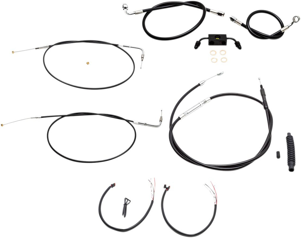 Complete Black Vinyl Braided Handlebar Cable/Brake Line KitComplete kit includes the correct length braided brake/clutch lines and wire extensions to complete a handlebar swap Chrome "T" brake line junction, banjo bolts, fittings and copper crush washers included Made in the U.S.A. Kit is based on using 2" risers with Ape Hanger handlebars. Harley Davidson XL 1200 C 2014-2019 Harley Davidson XL 1200 C ABS 2014-2019 Harley Davidson XL 1200 CX 2016-2020 Harley Davidson XL 1200 CX ABS 2016-2020 Harley Davidson XL 1200 NS 2021 Harley Davidson XL 1200 NS ABS 2018-2021 Harley Davidson XL 1200 T 2014-2017 Harley Davidson XL 1200 T ABS 2014-2018 Harley Davidson XL 1200 V ABS 2014-2016 Harley Davidson XL 1200 X 2014-2017 Harley Davidson XL 1200 X ABS 2014-2019 Harley Davidson XL 1200 X ABS 2018 Harley Davidson XL 1200 XS ABS 2018-2019 Harley Davidson XL 883 L 2014-2017 Harley Davidson XL 883 L 2018-2019 Harley Davidson XL 883 L ABS 2014-2019 Harley Davidson XL 883 N 2014-2022 Harley Davidson XL 883 N ABS 2014-2022