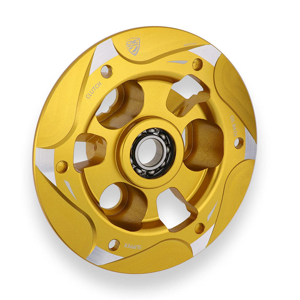 Pressure plate dedicated to oil bath clutch Ducati, made in light alloy, machined from solid and then anodized.