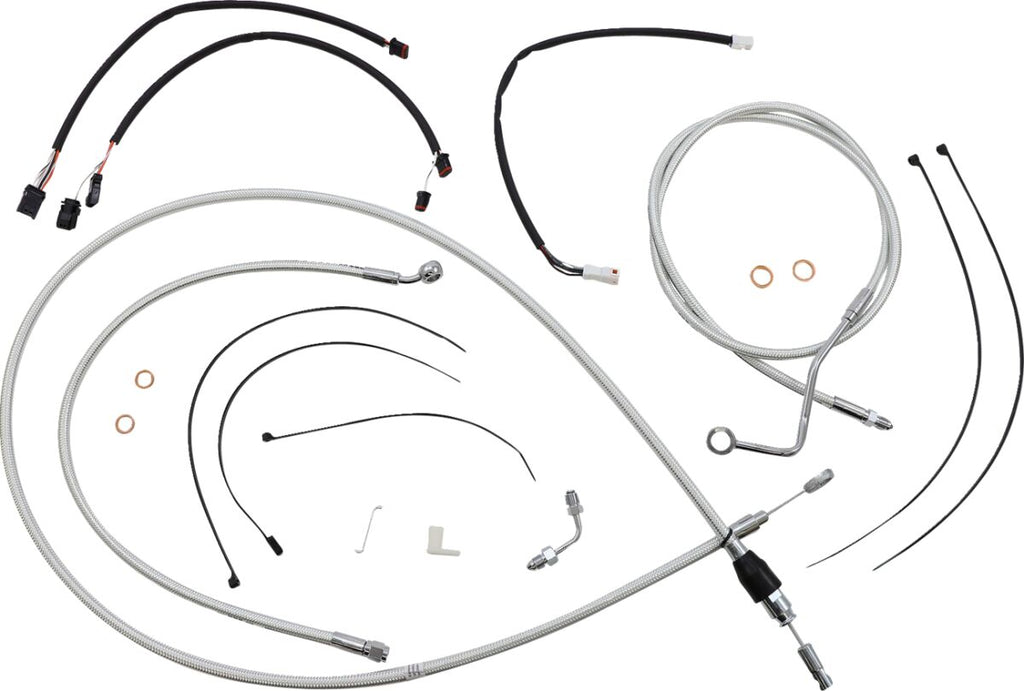 • Kit includes throttle and idle cables of throttle-by-wire extensions, clutch cable or hydraulic clutch line, brake lines, copper crush washers, hardware, and any necessary switch wiring of turn signal extension