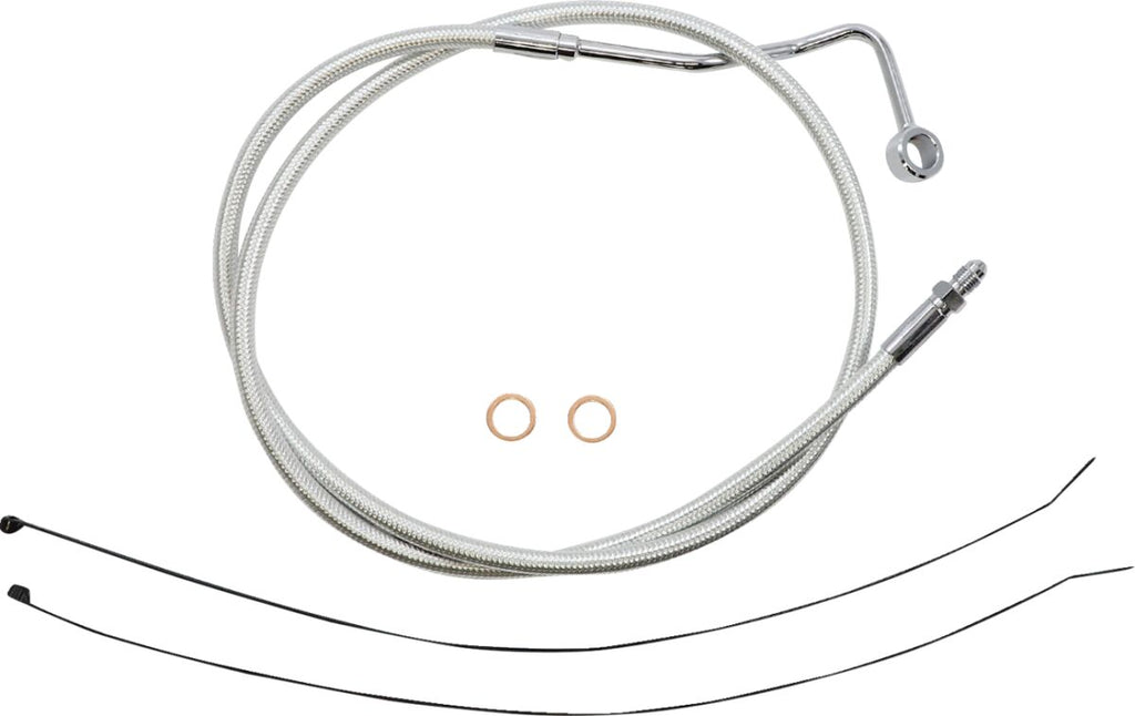 • Kit includes throttle and idle cables of throttle-by-wire extensions, clutch cable or hydraulic clutch line, brake lines, copper crush washers, hardware, and any necessary switch wiring of turn signal extension