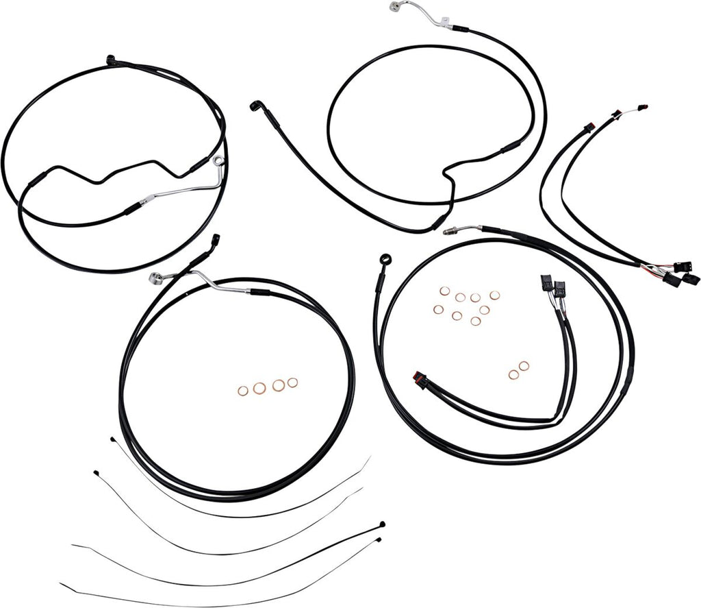 XR Handlebar Installation KitMagnum XR Handlebar Installation Kit offers a great fit and excellent quality at an economical price Kit features highly polished, chrome plated fittings All cables are a low effort, high efficiency design that meets or exceeds all OE specifications for fitment, construction, endurance Magnum XR Brake Lines use an enhanced construction of heavy gauge stainless steel embedded in tough abrasion resistant nylon outer jacket for superior durability and extreme braking response for safe riding The coating on cables and brake lines offers exceptional protection for paint or chrome Kits that include manifolds use an all brazed construction to ensure optimal OE fitment and appearance Manifolds use -3 AN connections for an easy installation Kit includes throttle and idle cables or throttle-by-wire extensions, clutch cable or XR hydraulic clutch line, XR brake lines, copper crush washers, hardware, turn signal and switch wiring extensions Kit is based on using ape hanger style handlebars and 2" risers. Harley Davidson FLHRXS 1750 ABS 2017-2018 Harley Davidson FLHRXS 1868 ABS 2019-2020