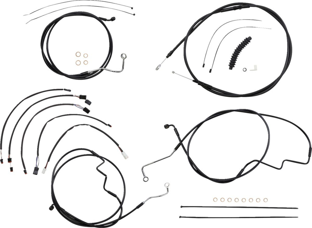 • Kit includes throttle and idle cables or throttle-by-wire extensions, clutch cable or XR hydraulic clutch line, XR brake lines, copper crush washers, hardware, turn signal and switch wiring extensions
