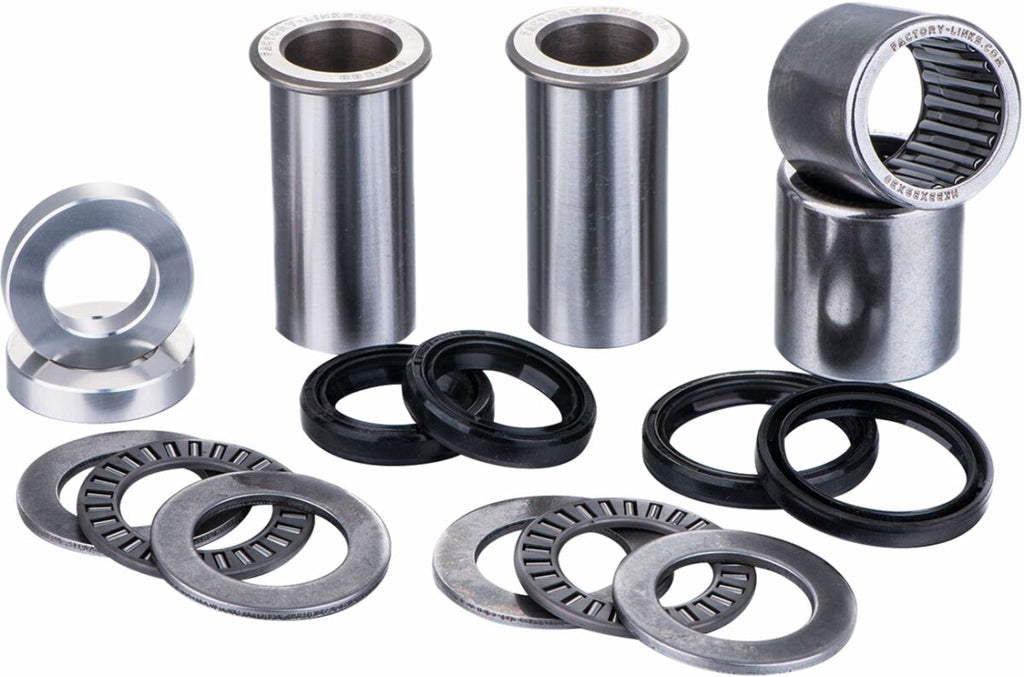 Swingarm Bearing KitEach Factory-Links premium kit contains all elements required for a full OEM-quality service of your swingarm Our dedicated off-road design of needle bearings, collars, pins and dust seals is specifically manufactured in order to reach the stringent OEM quality requirements, in terms of materials, dimension tolerances, hardness and surface roughness Kawasaki KLX 450 R 2008-2019 Kawasaki KX 250 F 2006-2016 Kawasaki KX 450 F 2006-2015