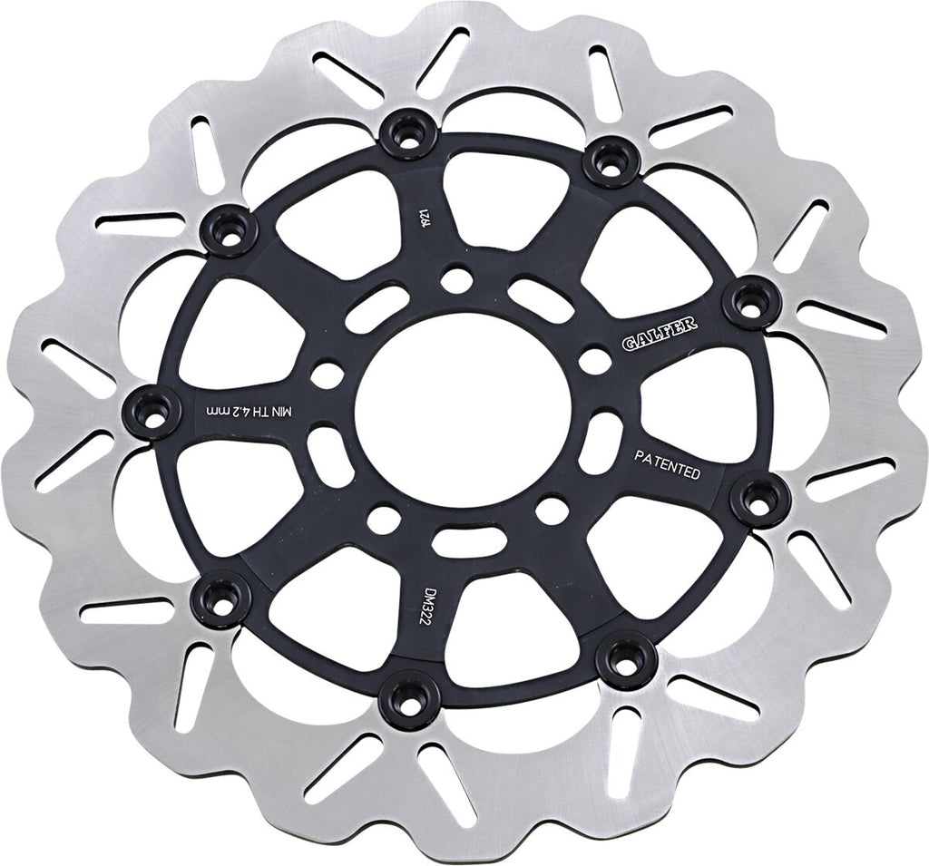 Wave® RotorLaser-cut double disc ground 420 high carbon stainless steel Direct-replacement brake rotors; do not require any extra parts, bolt on just like a stock brake disc Full-floating design rotors have an aluminum center carrier Improves brake lever feel and modulation Rotors cool as they rotate to lower brake operating temperatures Design is self-cleaning, removes water as it rotates Less tendency to warp Manufactured in Spain For maximum braking performance and rotor longevity, Galfer recommends using Galfer brake pads with Galfer rotors. Suzuki GSX-R 1000 2003-2004 Suzuki GSX-R 600 2004-2005 Suzuki GSX-R 750 2004-2005