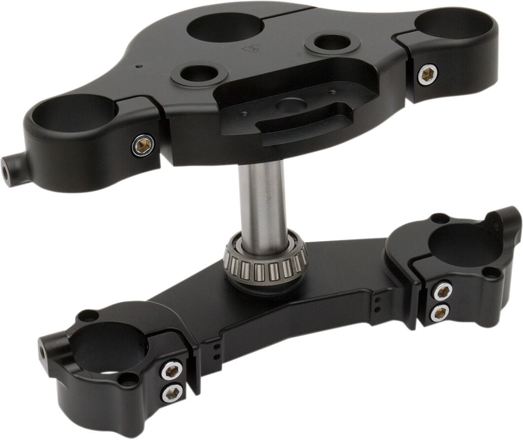 7 & 7 Raked Triple TreeTriple trees offer 7" of rake while maintaining 7" of trail when using a 23" wheel for the ultimate in handling, no frame modifications necessary Designed to work with 23" and 21" wheels only (stock diameter wheels will not handle correctly) 21" wheels provide 6-1/8" of trail Triple Trees are machined from forged 6061-T6 billet aluminum and then finished in black anodize Each kit includes top and bottom tree, pressed in steel stem, lower fork bearing and travel limiters on '14-'16 applications Batwing style Fairings maintain stock position and do not require angled headlight wedges or special brackets to properly adjust headlights Will not work with factory diameter wheels. The larger the wheel, the less fork travel. Always check lower tree to fender clearance. For '14- '16 kits, Arlen Ness had added travel limiters. Raked triple trees change the handling characteristics of the motorcycle. Use caution until familiar with the changes. Harley Davidson FLH 1868 ABS 2021 Harley Davidson FLHR 1690 2014-2015 Harley Davidson FLHR 1690 ABS 2014-2016 Harley Davidson FLHR 1750 2017-2018 Harley Davidson FLHR 1750 2019 Harley Davidson FLHR 1750 ABS 2017-2022 Harley Davidson FLHRXS 1868 ABS 2024 Harley Davidson FLHT 1750 ABS 2019-2021 Harley Davidson FLHTCUL 1690 ABS 2015-2016 Harley Davidson FLHTK 1690 ABS 2014-2016 Harley Davidson FLHTK 1750 ABS 2017-2018 Harley Davidson FLHTK 1868 ABS 2019-2024 Harley Davidson FLHTKL 1690 ABS 2015-2016 Harley Davidson FLHTKL 1750 ABS 2017-2018 Harley Davidson FLHTKL 1868 ABS 2019 Harley Davidson FLHTKSE 1800 ABS 2014-2016 Harley Davidson FLHTKSE 1868 ABS 2017 Harley Davidson FLHTKSE 1923 ABS 2018-2021 Harley Davidson FLHX 1690 2014 Harley Davidson FLHX 1690 ABS 2014 Harley Davidson FLHX 1750 ABS 2023 Harley Davidson FLHXS 1690 ABS 2014-2016 Harley Davidson FLHXS 1750 ABS 2017-2018 Harley Davidson FLHXS 1868 ABS 2019-2023 Harley Davidson FLTRK 1868 ABS 2020-2024 Harley Davidson FLTRKSE 1923 ABS 2022-2023 Harley Davidson FLTRU 1690 ABS 2016 Harley Davidson FLTRU 1750 ABS 2017-2018 Harley Davidson FLTRU 1868 ABS 2019 Harley Davidson FLTRUSE2 1800 ABS 2015-2016 Harley Davidson FLTRX 1690 2015-2016 Harley Davidson FLTRX 1690 ABS 2015-2016 Harley Davidson FLTRX 1750 2017-2018 Harley Davidson FLTRX 1750 2019 Harley Davidson FLTRX 1750 ABS 2017-2023 Harley Davidson FLTRXS 1690 ABS 2015-2016 Harley Davidson FLTRXS 1750 ABS 2017-2018 Harley Davidson FLTRXS 1868 ABS 2019-2023 Harley Davidson FLTRXSE 1923 ABS 2018-2022 Harley Davidson FLTRXSE 1977 ABS 2023-2024 Harley Davidson FLTRXST 1923 ABS 2022-2023 Harley Davidson FLTRXSTSE 1977 ABS 2024