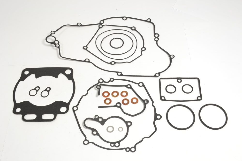 Complete Gasket KitHead gasket features rubber-coated spring steel construction Soft steel base gaskets are rubber coated Steel core material features high spring-back and superior tensile strength Revolutionary transparent coating guarantees a perfect seal even at extremely high temperatures High-temperature blue silicone beading on most critical flat gaskets Includes all necessary top-quality gaskets, rubber parts and valve stem seals to rebuild engine Kawasaki KX 250 2005-2008