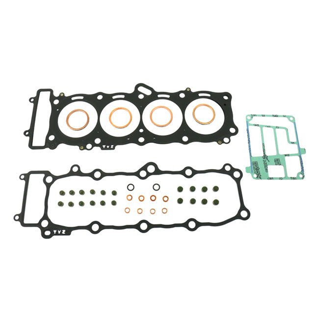 The Athena top end gasket kits include all necessary gaskets to rebuild the top end of the engine from the base gasket up. Kit includes all rubber gaskets, such as o-rings and valve stem seal. Valve cover gasket is separately available. High temperature blue silicon beading on most critical flat gaskets. Fits Yamaha: 04-06 YZF R1 1000cc