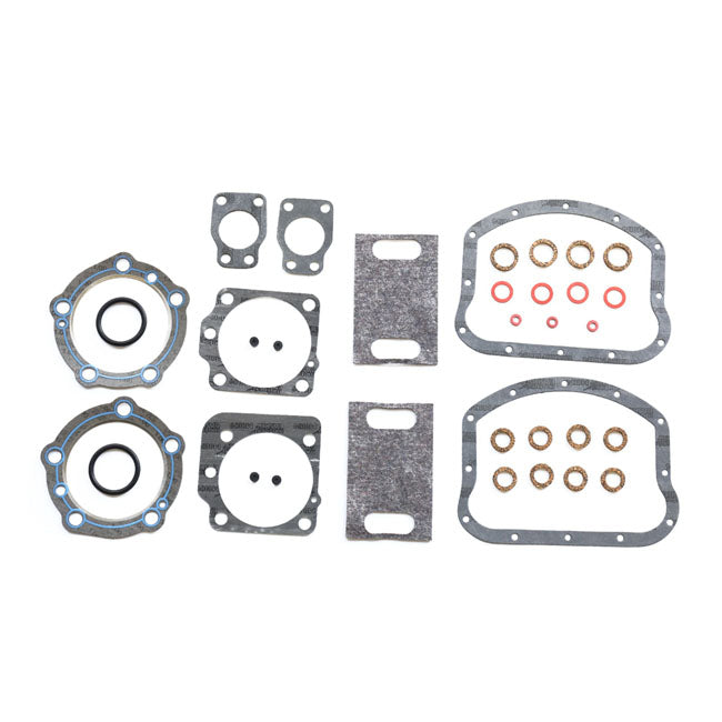 Incl. blue PTFE coated head gaskets, paper base gaskets. Includes paper rocker pan gaskets and all other gaskets, seals and O-rings required for a top end rebuild. OEM replacement reference 17034-48. . Fitment: 48-65 Panhead (NU)