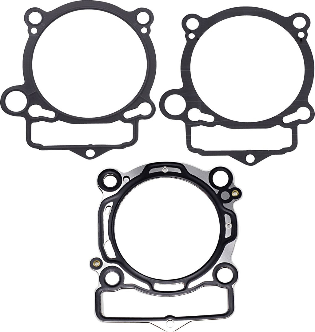 Top End Race Gasket KitSpecifically designed for the pro, semi-pro and amateur rider who freshens up their engine prior to a race or during mid-season Kit includes a top-of-the line MLSS head gasket and two or more premium-quality base gaskets of different thicknesses to optimize engine compression ratios Gives the rider a choice of using standard gas with stock compression, or race gas with a higher compression Kit does not include valve stem seals, rubber parts, shims, or other fiber gaskets. GasGas EX 350 F 2022 Husqvarna FC 350 2019 Husqvarna FE 350 2022 Husqvarna FX 350 2019 KTM EXC-F 350 2022 KTM XC-F 350 I 2019-2023