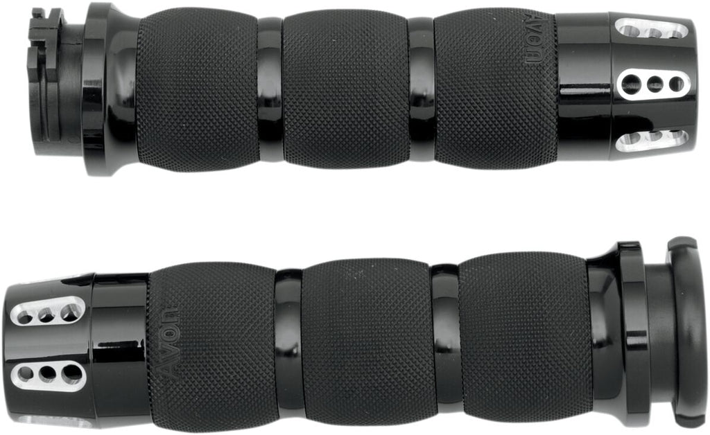 Gatlin Air Cushioned GripsFeature billet end caps and rings with ergonomic AVON seamless rubber grip technology Designed with a very soft, tacky, and durable material Touring-style grips fit 1" handlebars, Superbike-style grips fit 7/8" handlebars Made in the USA Harley Davidson FLD 1690 2012-2013 Harley Davidson FLD 1690 ABS 2012-2016 Harley Davidson FLH 1984-1985 Harley Davidson FLHR 1340 1994-1998 Harley Davidson FLHR 1450 1999-2006 Harley Davidson FLHR 1584 2007 Harley Davidson FLHRC 1450 2004 Harley Davidson FLHRC 1584 2007 Harley Davidson FLHRCI 1340 EFI 1998 Harley Davidson FLHRCI 1450 EFI 1999-2006 Harley Davidson FLHRI 1340 EFI 1996-1997 Harley Davidson FLHRI 1450 EFI 1999-2006 Harley Davidson FLHRS 1450 2004-2006 Harley Davidson FLHRS 1584 2007 Harley Davidson FLHRSE3 1800 2007 Harley Davidson FLHRSEI 1550 2002 Harley Davidson FLHRSEI2 1690 2003 Harley Davidson FLHRSI 1450 EFI 2004-2006 Harley Davidson FLHS 1340 1987-1993 Harley Davidson FLHT 1340 1986-1998 Harley Davidson FLHT 1450 1999-2006 Harley Davidson FLHT 1584 2007 Harley Davidson FLHTC 1340 1984-1998 Harley Davidson FLHTC 1450 2002-2005 Harley Davidson FLHTCI 1340 EFI 1996-1998 Harley Davidson FLHTCI 1450 EFI 1999-2006 Harley Davidson FLHTCSE 1690 EFI 2004 Harley Davidson FLHTCSE2 1690 EFI 2005 Harley Davidson FLHTCU 1340 1989-1997 Harley Davidson FLHTCU 1584 2007 Harley Davidson FLHTCUI 1340 EFI 1995-1998 Harley Davidson FLHTCUI 1450 EFI 1999-2006 Harley Davidson FLHTCUSE2 1800 2007 Harley Davidson FLHTI 1450 EFI 2004-2006 Harley Davidson FLHX 1340 1984-1985 Harley Davidson FLHX 1450 2006 Harley Davidson FLHX 1584 2007 Harley Davidson FLHXI 1450 EFI 2006 Harley Davidson FLS 1690 2012-2015 Harley Davidson FLS 1690 ABS 2012-2015 Harley Davidson FLST 1340 1986-1990 Harley Davidson FLST 1450 2006 Harley Davidson FLSTC 1340 1988-1999 Harley Davidson FLSTC 1450 2000-2006 Harley Davidson FLSTC 1584 2007-2011 Harley Davidson FLSTC 1584 ABS 2011 Harley Davidson FLSTC 1690 2012-2013 Harley Davidson FLSTC 1690 ABS 2012-2015 Harley Davidson FLSTCI 1450 EFI 2001-2006 Harley Davidson FLSTF 1340 1990-1999 Harley Davidson FLSTF 1450 2000-2006 Harley Davidson FLSTF 1584 2007-2011 Harley Davidson FLSTF 1584 ABS 2011 Harley Davidson FLSTF 1690 2012-2014 Harley Davidson FLSTF 1690 ABS 2012-2015 Harley Davidson FLSTFB 1584 2010-2011 Harley Davidson FLSTFB 1584 ABS 2011 Harley Davidson FLSTFB 1690 2012-2013 Harley Davidson FLSTFB 1690 ABS 2012-2015 Harley Davidson FLSTFI 1450 EFI 2001-2006 Harley Davidson FLSTFI 1550 EFI 2005 Harley Davidson FLSTFSE 1690 2005 Harley Davidson FLSTFSE2 1690 2006 Harley Davidson FLSTI 1450 EFI 2006 Harley Davidson FLSTN 1340 1993-1996 Harley Davidson FLSTN 1584 2007-2011 Harley Davidson FLSTN 1584 ABS 2011 Harley Davidson FLSTN 1690 2012-2013 Harley Davidson FLSTN 1690 ABS 2012-2015 Harley Davidson FLSTNI 1450 EFI 2005-2006 Harley Davidson FLSTNSE 1800 ABS 2014-2015 Harley Davidson FLSTS 1340 1997-1999 Harley Davidson FLSTS 1450 2000-2003 Harley Davidson FLSTSB 1584 2008-2011 Harley Davidson FLSTSC 1450 2005-2006 Harley Davidson FLSTSC 1584 2007 Harley Davidson FLSTSCI 1450 EFI 2005-2006 Harley Davidson FLSTSI 1450 EFI 2003 Harley Davidson FLTC 1340 1983-1991 Harley Davidson FLTCU 1340 1989-1996 Harley Davidson FLTR 1450 1999-2003 Harley Davidson FLTR 1584 2007 Harley Davidson FLTRI 1340 EFI 1998 Harley Davidson FLTRI 1450 EFI 1999-2006 Harley Davidson FLTRSEI 1550 2000 Harley Davidson FLTRSEI2 1550 2001 Harley Davidson FXCW 1584 2008-2009 Harley Davidson FXCWC 1584 2008-2011 Harley Davidson FXCWC 1584 ABS 2011 Harley Davidson FXD 1340 1995-1998 Harley Davidson FXD 1450 1999-2005 Harley Davidson FXD 1584 2007-2010 Harley Davidson FXDB 1340 1991-1992 Harley Davidson FXDB 1584 2007-2013 Harley Davidson FXDB 1584 ABS 2012-2013 Harley Davidson FXDB 1690 2014-2017 Harley Davidson FXDB 1690 ABS 2014-2017 Harley Davidson FXDBI 1450 EFI 2006 Harley Davidson FXDC 1340 1992 Harley Davidson FXDC 1450 2005 Harley Davidson FXDC 1584 2007-2013 Harley Davidson FXDC 1584 ABS 2012-2013 Harley Davidson FXDC 1690 2014 Harley Davidson FXDC 1690 ABS 2014 Harley Davidson FXDCI 1450 EFI 2005-2006 Harley Davidson FXDF 1584 2008-2011 Harley Davidson FXDF 1584 ABS 2012 Harley Davidson FXDF 1690 2012-2017 Harley Davidson FXDF 1690 ABS 2012-2017 Harley Davidson FXDFSE 1800 2009 Harley Davidson FXDFSE2 1800 2010 Harley Davidson FXDI 1450 EFI 2004-2006 Harley Davidson FXDI35 1450 EFI 2006 Harley Davidson FXDL 1340 1993-1998 Harley Davidson FXDL 1450 1999-2005 Harley Davidson FXDL 1584 2007-2009 Harley Davidson FXDL 1690 2014-2017 Harley Davidson FXDL 1690 ABS 2014-2017 Harley Davidson FXDLI 1450 EFI 2004-2006 Harley Davidson FXDS-CON 1340 1994-2000 Harley Davidson FXDSE 1800 2007 Harley Davidson FXDSE2 1800 2008 Harley Davidson FXDWG 1340 1993-1998 Harley Davidson FXDWG 1450 1999-2005 Harley Davidson FXDWG 1584 2007-2011 Harley Davidson FXDWG 1584 ABS 2012 Harley Davidson FXDWG 1690 2012-2013 Harley Davidson FXDWG 1690 ABS 2012-2017 Harley Davidson FXDWG2 1450 2001 Harley Davidson FXDWG3 1450 2002 Harley Davidson FXDWGI 1450 EFI 2004-2006 Harley Davidson FXDX 1450 1999-2004 Harley Davidson FXDXI 1450 EFI 2004-2005 Harley Davidson FXDXT 1450 2001-2003 Harley Davidson FXEF 1340 1985 Harley Davidson FXLR 1340 1987-1994 Harley Davidson FXR 1340 1986-1994 Harley Davidson FXR2 1340 1999 Harley Davidson FXR3 1340 1999 Harley Davidson FXR4 1340 2000 Harley Davidson FXRC 1340 1985-1987 Harley Davidson FXRD 1340 1986 Harley Davidson FXRS 1340 1984-1992 Harley Davidson FXRS CON. 1340 1990-1993 Harley Davidson FXRS-SP 1340 1986-1993 Harley Davidson FXRT 1340 1984-1992 Harley Davidson FXS 1584 2011 Harley Davidson FXS 1584 ABS 2011-2012 Harley Davidson FXS 1690 2012-2013 Harley Davidson FXS 1690 ABS 2012 Harley Davidson FXSB 1340 1985 Harley Davidson FXSB 1690 2013 Harley Davidson FXSB 1690 ABS 2013-2015 Harley Davidson FXSBSE 1800 ABS 2013 Harley Davidson FXST 1340 1985-1999 Harley Davidson FXST 1450 2000-2006 Harley Davidson FXST 1584 2007 Harley Da