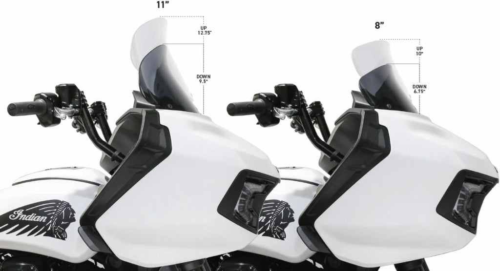 Flare™ Indian WindshieldInstall easily using stock mounting hardware Maintain stock windshield height adjustability Innovative design features “hips” at the outer edge of the shield that re-routes the air to add downforce and aid stability "Flip" at the top sends clean, less turbulent air to rider and passenger Manufactured from dual-side hard-coated polycarbonate material for outstanding impact strength Made in the U.S.A. Indian CHIEFTAIN 111 ABS 2016-2025 Indian CHIEFTAIN 116 ABS 2020-2025 Indian ROADMASTER 111 ABS 2018-2020 Indian ROADMASTER 116 ABS 2020-2025