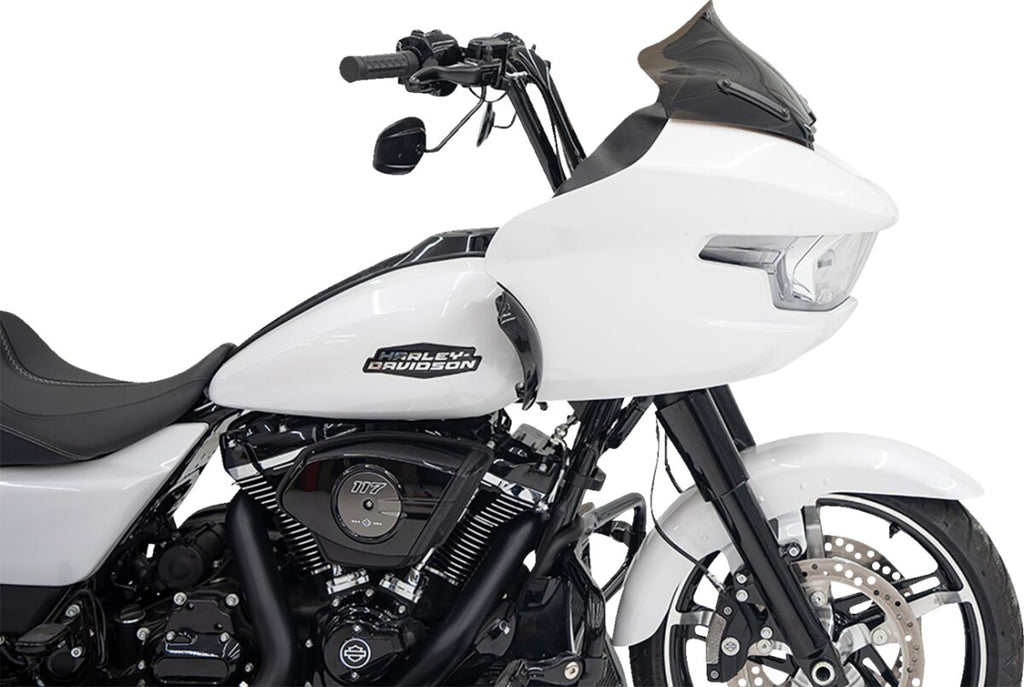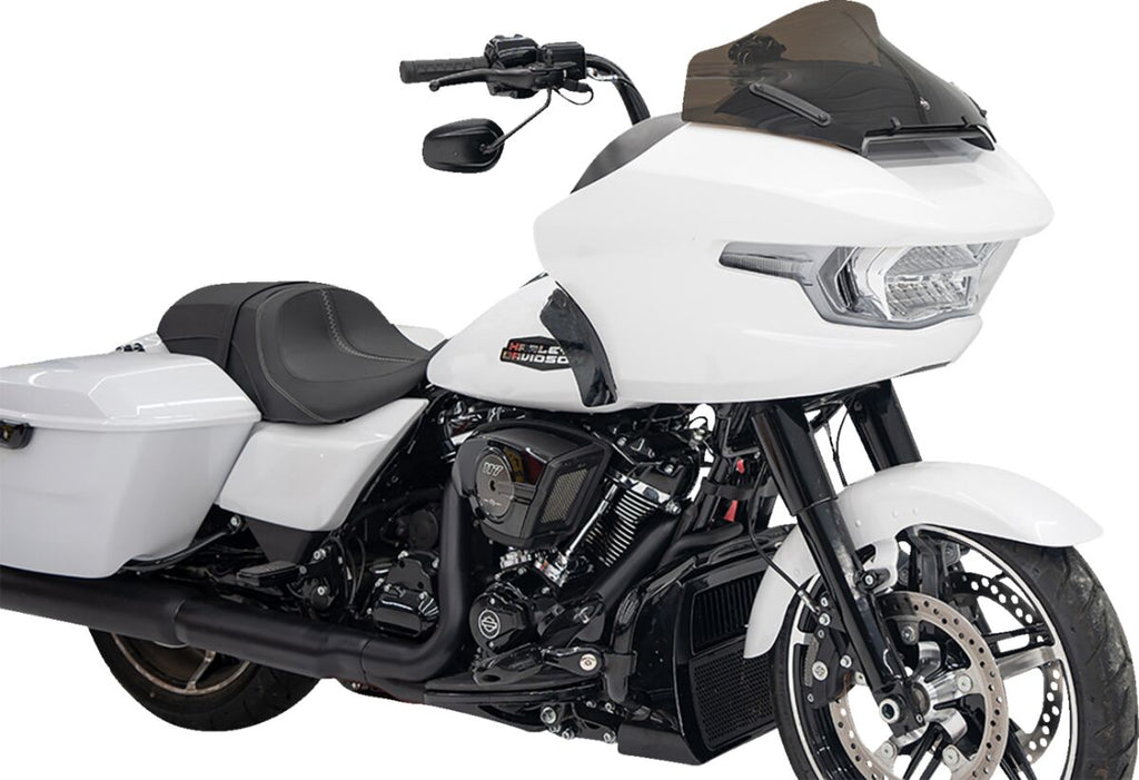 Kolor Flare™ Sport WindshieldThe innovative design features “hips” at the outer edge of the shield that re-route wind and air to add downforce to the front of the bike, improving stability at high speeds compared to riding with a stock windshield The “flip” at the top of the Flare™ is designed to kick the air up causing it to flow back as “clean” less turbulent air for the rider and passenger Harley Davidson FLTRX 1923 ABS 2024-2025 Harley Davidson FLTRXRRSE 2147 ABS 2025 Harley Davidson FLTRXSE 1977 ABS 2023-2025 Harley Davidson FLTRXSTSE 1977 ABS 2024-2025