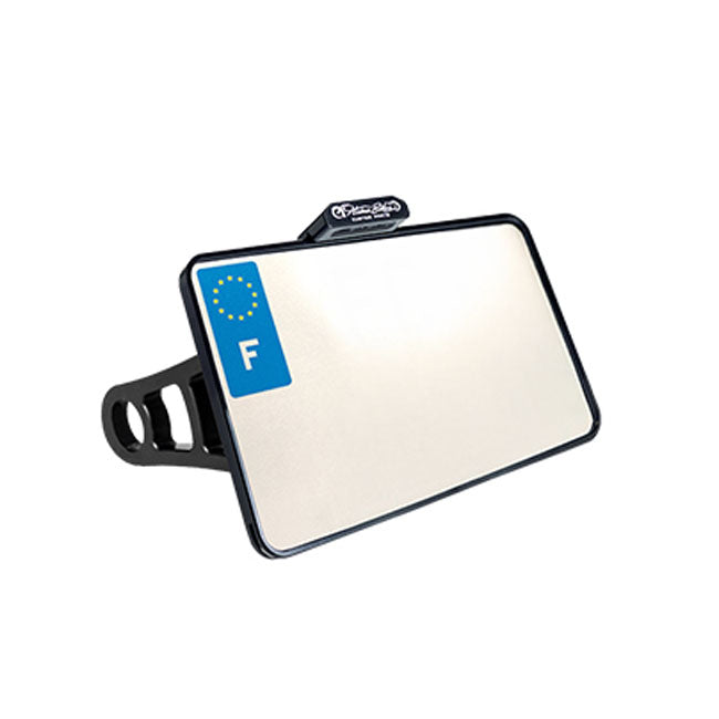 HeinzBikes Side Mount License Plate Bracket Black For 91-07 Softail - 210 MM X 130 MM. France. 210mm wide x 130mm high. CNC precision machined aluminum construction. With EC approved LED license plate illumination. The HeinzBikes SLIPP-INN 'Screwless' license plate mounting technology allows you to just simply slide the license plate into the holder, without requiring bolts or glue to keep it in place. Sold as kit, complete with all required installation hardware to get the install-job done. Note: With approval. Check your local MCS dealer or the MCS sales department for exact type of approval and validity on bike model and years on the test report. - Integrated LED license plate light in a slim aluminum housing - Slip-Inn license plate mount - Strong mount arm with ANTI-TWIST locking mechanism - Guaranteed anti-twist protection on the swingarm - Invisible cable routing on the inside - Mounts with 3 different width options - Complete with installation hardware - CNC machined aluminum