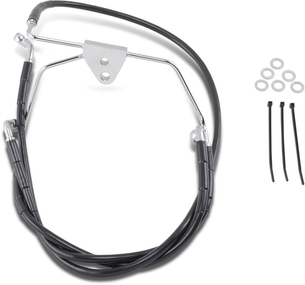 Extended Length Black Vinyl Brake Line KitFeatures black vinyl-coated braided extended lines with chrome steel fittings Made in the U.S.A. All measurements are approximate. Harley Davidson FLHT 1340 1996-1998 Harley Davidson FLHT 1450 1999 Harley Davidson FLHT 1450 2000-2003 Harley Davidson FLHT 1450 2004-2005 Harley Davidson FLHT 1584 2007 Harley Davidson FLHTC 1340 1996-1998 Harley Davidson FLHTC 1450 2002-2004 Harley Davidson FLHTC 1450 2005 Harley Davidson FLHTC 1584 2007 Harley Davidson FLHTCI 1340 EFI 1996-1998 Harley Davidson FLHTCI 1450 EFI 1999-2006 Harley Davidson FLHTCI 1450 EFI 2004 Harley Davidson FLHTCSE2 1690 EFI 2005 Harley Davidson FLHTCU 1340 1996-1997 Harley Davidson FLHTCU 1584 2007 Harley Davidson FLHTCUI 1340 EFI 1996-1998 Harley Davidson FLHTCUI 1450 EFI 1999-2000 Harley Davidson FLHTCUI 1450 EFI 2001-2006 Harley Davidson FLHTCUSE 1690 2006 Harley Davidson FLHTCUSE2 1800 2007 Harley Davidson FLHTI 1450 EFI 2004-2006 Harley Davidson FLHX 1450 2006 Harley Davidson FLHX 1584 2007 Harley Davidson FLHXI 1450 EFI 2006