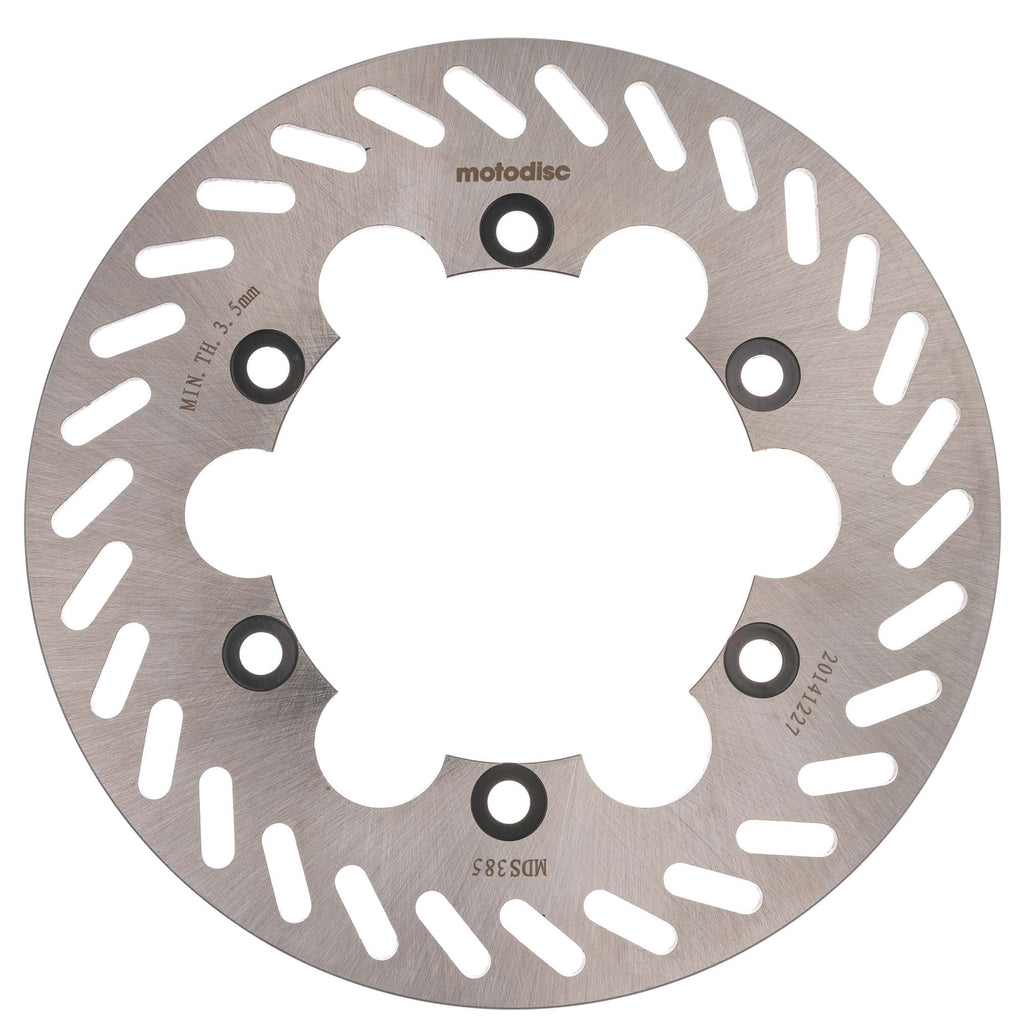 Constructed using one complete segment of Japanese SUS 420 stainless steel, then heat treated to HRC 36+-2 standards. Lightening and drill hole patterns are applied as per OEM specifications to improve braking performance and reduce the discs temperature during use.