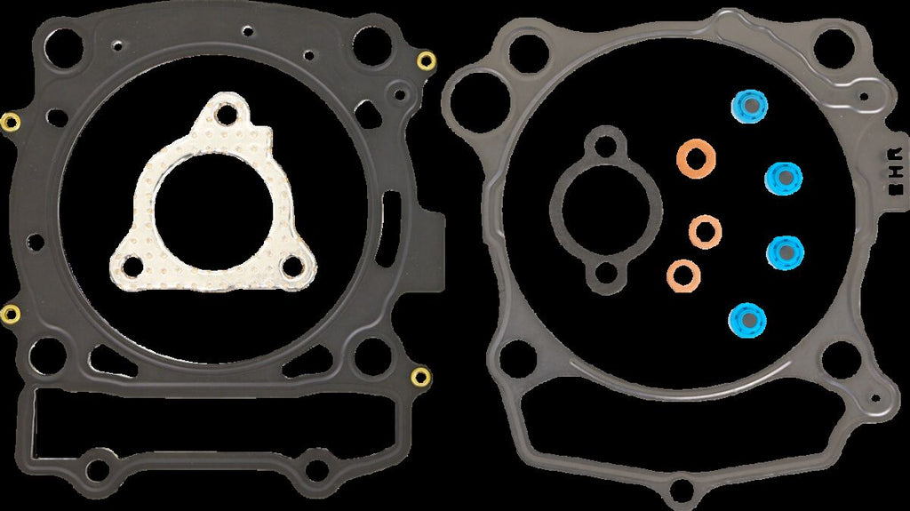 Top End Gasket KitTop end gasket kit includes correct base, head gasket and cylinder O-rings as well as other top end specific O-rings or seals needed for R&R of top end MLS head gaskets promote an even torque load across the gasket sealing surface, providing less bore distortion and better piston ring seal for more power 4-stroke head gaskets are made to perform on today’s highest-output 4-stroke naturally aspirated and boosted machines, utilizing a multi-layered steel design with the outer layers being embossed and coated with a Viton rubber coating; these head gaskets are designed to meet the demands of today's high-horsepower, high-cylinder-pressure engines EST (Extreme Sealing Technology) gasket kit includes embossed stainless steel head, base and rocker gaskets covered with a proprietary rubber material Head gasket material allows heat to be drawn away from the combustion ring and dissipated evenly across the gasket surface to eliminate hot spots and gasket failure Made in the USA Yamaha YZ 450 F 2023-2025