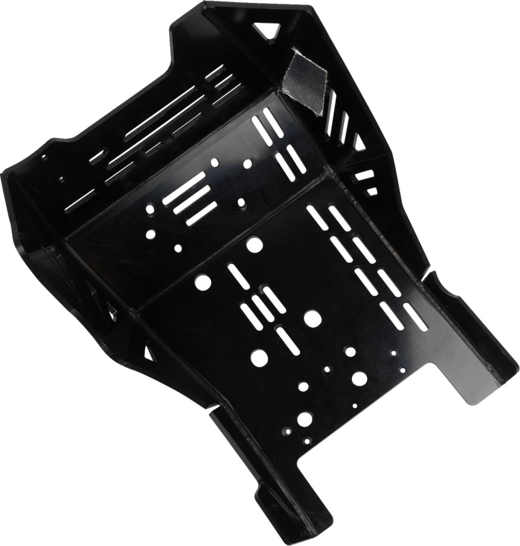 Adventure Skid Plate with Linkage GuardMade from 8mm thick High density polyethylen plastic is 30 to 40% lighter than its aluminium counterparts Independent linkage guard to maximise the chances of compatibility with after market center stands Protects the engine block and the important parts of the bike Absorbs impacts without saving deformations and will not generate any vibrations Plastic reduces projection noise to ensure more confortable rides Some modifications might be required to fit the skid plate with your centre stand.