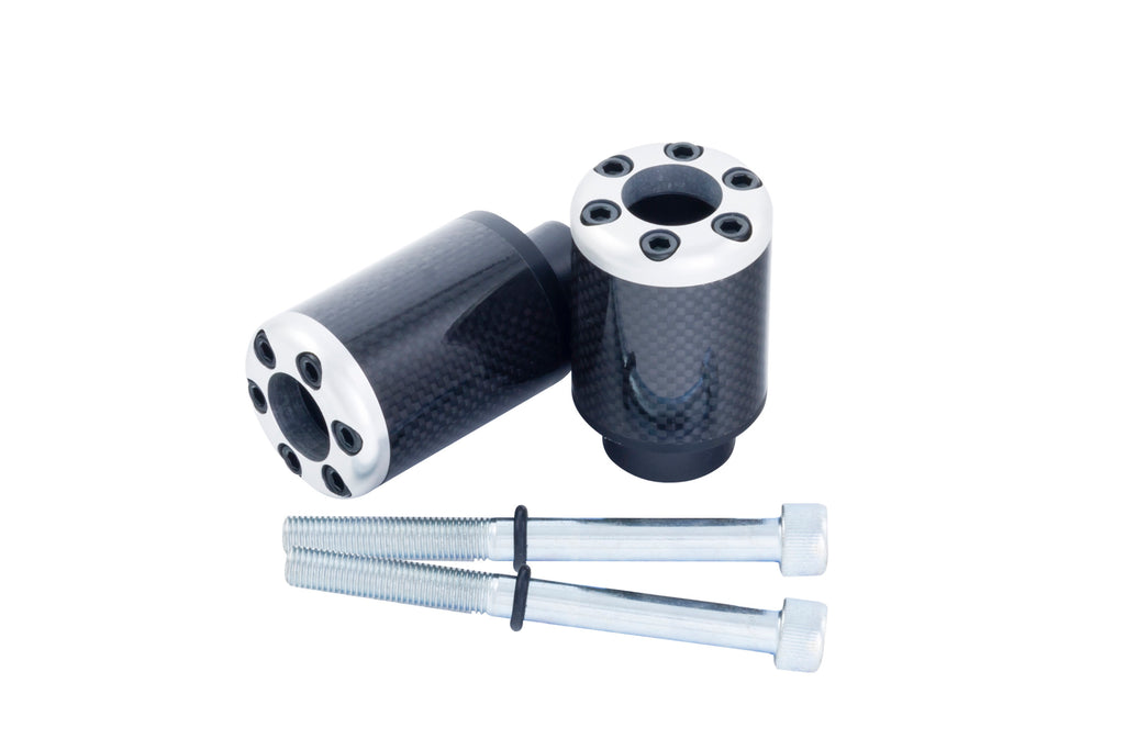 Carbon Fibre crash protectors can be upgraded with Aluminium coloured end caps.
