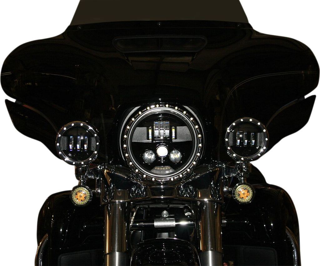 7" ProBeam® LED HeadlampLow beam consists of three high-power advanced optical D lenses and a DRL High beam keeps low beam illuminated and adds two additional advanced optical D lenses with three projector senses for an incredibly wide optical pattern Made from heavy-duty, lightweight die-cast aluminum, the low-profile housing requires no trim ring and offers a plug-and-play installation Durable polycarbonate lens for long-term durability Plug-and-Play H4 connector Made in USA For models with OEM 7” headlight buckets. 2120-0647 required for plug and play installation on '14-'20 FLHX/FLHT and FLHTCUTG models. 2001-1264 adapter required for plug and play installation on '14-'20 FLHR/FLHRS.Indian ROADMASTER 111 ABS 2015-2020 Indian ROADMASTER 116 ABS 2020-2022 Harley Davidson FLD 1690 2012-2013 Harley Davidson FLD 1690 ABS 2012-2016 Harley Davidson FLH 1340 1981-1984 Harley Davidson FLHC 1340 1981-1983 Harley Davidson FLHFB 1868 ABS 2023 Harley Davidson FLHR 1340 1994-1998 Harley Davidson FLHR 1450 1999-2006 Harley Davidson FLHR 1584 2007-2011 Harley Davidson FLHR 1584 ABS 2008-2011 Harley Davidson FLHR 1690 2012-2015 Harley Davidson FLHR 1690 ABS 2012-2016 Harley Davidson FLHR 1750 2017-2018 Harley Davidson FLHR 1750 2019 Harley Davidson FLHR 1750 ABS 2017-2022 Harley Davidson FLHRC 1450 2004 Harley Davidson FLHRC 1584 2007-2010 Harley Davidson FLHRC 1584 ABS 2008-2011 Harley Davidson FLHRC 1690 ABS 2011-2016 Harley Davidson FLHRC 1750 ABS 2017-2019 Harley Davidson FLHRCI 1340 EFI 1998 Harley Davidson FLHRCI 1450 EFI 1999-2006 Harley Davidson FLHRI 1340 EFI 1996-1997 Harley Davidson FLHRI 1450 EFI 1999-2006 Harley Davidson FLHRS 1450 2004-2006 Harley Davidson FLHRS 1584 2007 Harley Davidson FLHRSI 1450 EFI 2004-2006 Harley Davidson FLHRXS 1750 ABS 2017-2018 Harley Davidson FLHRXS 1868 ABS 2019-2024 Harley Davidson FLHT 1340 1983-1998 Harley Davidson FLHT 1450 1999-2006 Harley Davidson FLHT 1584 2007-2010 Harley Davidson FLHT 1584 ABS 2008-2010 Harley Davidson FLHT 1750 ABS 2019-2022 Harley Davidson FLHTC 1340 1983-1998 Harley Davidson FLHTC 1450 2002-2005 Harley Davidson FLHTC 1584 2007-2011 Harley Davidson FLHTC 1584 ABS 2009-2011 Harley Davidson FLHTC 1690 2012-2013 Harley Davidson FLHTC 1690 ABS 2011-2013 Harley Davidson FLHTCI 1340 EFI 1996-1998 Harley Davidson FLHTCI 1450 EFI 1999-2006 Harley Davidson FLHTCSE 1690 EFI 2004 Harley Davidson FLHTCSE2 1690 EFI 2005 Harley Davidson FLHTCU 1340 1989-1997 Harley Davidson FLHTCU 1584 2007-2011 Harley Davidson FLHTCU 1584 ABS 2008-2011 Harley Davidson FLHTCU 1690 2012-2013 Harley Davidson FLHTCU 1690 ABS 2012-2016 Harley Davidson FLHTCU 1750 ABS 2017-2019 Harley Davidson FLHTCUI 1340 EFI 1995-1998 Harley Davidson FLHTCUI 1450 EFI 1999-2006 Harley Davidson FLHTCUL 1690 ABS 2015-2016 Harley Davidson FLHTCUSE 1690 2006 Harley Davidson FLHTCUSE2 1800 2007 Harley Davidson FLHTCUSE3 1800 ABS 2008 Harley Davidson FLHTCUSE4 1800 ABS 2009 Harley Davidson FLHTCUSE5 1800 ABS 2010 Harley Davidson FLHTCUSE6 1800 ABS 2011 Harley Davidson FLHTCUSE7 1800 ABS 2012 Harley Davidson FLHTCUSE8 1800 ABS 2013 Harley Davidson FLHTCUTG 1690 2009-2016 Harley Davidson FLHTCUTG 1750 2017-2018 Harley Davidson FLHTCUTG 1750 ABS 2019 Harley Davidson FLHTCUTG 1868 ABS 2020-2024 Harley Davidson FLHTCUTGSE 1923 ABS 2020-2022 Harley Davidson FLHTE 1340 1984 Harley Davidson FLHTI 1450 EFI 2004-2006 Harley Davidson FLHTK 1584 ABS 2010-2011 Harley Davidson FLHTK 1690 ABS 2011-2016 Harley Davidson FLHTK 1750 ABS 2017-2018 Harley Davidson FLHTK 1868 ABS 2019-2024 Harley Davidson FLHTKL 1690 ABS 2015-2016 Harley Davidson FLHTKL 1750 ABS 2017-2018 Harley Davidson FLHTKL 1868 ABS 2019 Harley Davidson FLHTKSE 1800 ABS 2014-2016 Harley Davidson FLHTKSE 1868 ABS 2017 Harley Davidson FLHTKSE 1923 ABS 2018-2021 Harley Davidson FLHX 1450 2006 Harley Davidson FLHX 1584 2007-2011 Harley Davidson FLHX 1584 ABS 2008-2011 Harley Davidson FLHX 1690 2011-2016 Harley Davidson FLHX 1690 ABS 2011-2016 Harley Davidson FLHX 1750 2017-2018 Harley Davidson FLHX 1750 2019 Harley Davidson FLHX 1750 ABS 2017-2023 Harley Davidson FLHXI 1450 EFI 2006 Harley Davidson FLHXS 1690 ABS 2014-2016 Harley Davidson FLHXS 1750 ABS 2017-2018 Harley Davidson FLHXS 1868 ABS 2019-2023 Harley Davidson FLHXSE 1800 ABS 2010-2016 Harley Davidson FLHXSE 1868 ABS 2017 Harley Davidson FLHXSE 1923 ABS 2018-2022 Harley Davidson FLHXSE 1977 ABS 2023-2024 Harley Davidson FLHXSE2 1800 ABS 2011 Harley Davidson FLHXSE3 1800 ABS 2012 Harley Davidson FLHXST 1923 ABS 2022-2023 Harley Davidson FLRT 1690 2015-2016 Harley Davidson FLRT 1750 2017-2018 Harley Davidson FLRT 1750 ABS 2019 Harley Davidson FLRT 1868 ABS 2020-2024 Harley Davidson FLST 1340 1986-1990 Harley Davidson FLST 1450 2006 Harley Davidson FLSTC 1340 1988-1999 Harley Davidson FLSTC 1450 2000-2006 Harley Davidson FLSTC 1584 2007-2011 Harley Davidson FLSTC 1584 ABS 2011 Harley Davidson FLSTC 1690 2012-2013 Harley Davidson FLSTC 1690 ABS 2012-2017 Harley Davidson FLSTCI 1450 EFI 2001-2006 Harley Davidson FLSTF 1340 1990-1999 Harley Davidson FLSTF 1450 2000-2006 Harley Davidson FLSTF 1584 2007-2011 Harley Davidson FLSTF 1584 ABS 2011 Harley Davidson FLSTF 1690 2012-2014 Harley Davidson FLSTF 1690 ABS 2012-2017 Harley Davidson FLSTI 1450 EFI 2006 Harley Davidson FLSTN 1340 1993-1996 Harley Davidson FLSTN 1450 2005-2006 Harley Davidson FLSTN 1584 2007-2011 Harley Davidson FLSTN 1584 ABS 2011 Harley Davidson FLSTN 1690 2012-2013 Harley Davidson FLSTN 1690 ABS 2012-2017 Harley Davidson FLSTNI 1450 EFI 2005-2006 Harley Davidson FLTRT 1868 ABS 2023-2024