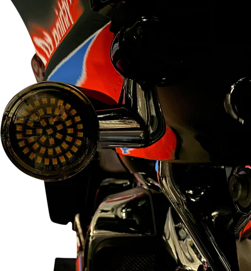 Genesis® 4 Amber/White LED Turn Signal Inserts 48 super bright dual color LEDs Bright white running lights and full amber turn signals When turn signal is activated the white DRL turns off completely for greater visibility to the turn signal Plug-and-Play Load equalizer/SMART Signal Stabilizer™ may be required Harley Davidson XLH 1200 2000-2003 Harley Davidson XLH 883 2000-2003 Harley Davidson FLD 1690 2012-2013 Harley Davidson FLD 1690 ABS 2012-2016 Harley Davidson FLFB 1750 ABS 2018-2020 Harley Davidson FLFBS 1868 ABS 2018-2024 Harley Davidson FLH 1868 ABS 2021 Harley Davidson FLHC 1750 ABS 2018-2022 Harley Davidson FLHCS 1868 ABS 2018-2024 Harley Davidson FLHRS 1450 2004-2006 Harley Davidson FLHRS 1584 2007 Harley Davidson FLHRSE3 1800 2007 Harley Davidson FLHRSEI 1550 2002 Harley Davidson FLHRSEI2 1690 2003 Harley Davidson FLHRSI 1450 EFI 2004-2006 Harley Davidson FLHRXS 1750 ABS 2017-2018 Harley Davidson FLHRXS 1868 ABS 2019-2024 Harley Davidson FLHT 1750 ABS 2019-2022 Harley Davidson FLHTCSE 1690 EFI 2004 Harley Davidson FLHTCSE2 1690 EFI 2005 Harley Davidson FLHTCU 1690 ABS 2014-2016 Harley Davidson FLHTCU 1750 ABS 2017-2019 Harley Davidson FLHTCUL 1690 ABS 2015-2016 Harley Davidson FLHTCUSE 1690 2006 Harley Davidson FLHTCUSE2 1800 2007 Harley Davidson FLHTCUSE3 1800 ABS 2008 Harley Davidson FLHTCUSE4 1800 ABS 2009 Harley Davidson FLHTCUSE5 1800 ABS 2010 Harley Davidson FLHTCUSE6 1800 ABS 2011 Harley Davidson FLHTCUSE7 1800 ABS 2012 Harley Davidson FLHTCUSE8 1800 ABS 2013 Harley Davidson FLHTCUTG 1690 2009-2016 Harley Davidson FLHTCUTG 1750 2017-2018 Harley Davidson FLHTCUTG 1750 ABS 2019 Harley Davidson FLHTCUTG 1868 ABS 2020-2024 Harley Davidson FLHTK 1690 ABS 2014-2016 Harley Davidson FLHTK 1750 ABS 2017-2018 Harley Davidson FLHTK 1868 ABS 2019-2024 Harley Davidson FLHTKL 1690 ABS 2015-2016 Harley Davidson FLHTKL 1750 ABS 2017-2018 Harley Davidson FLHTKL 1868 ABS 2019 Harley Davidson FLHX 1450 2006 Harley Davidson FLHX 1584 2007-2011 Harley Davidson FLHX 1584 ABS 2008-2011 Harley Davidson FLHX 1690 2011-2016 Harley Davidson FLHX 1690 ABS 2011-2016 Harley Davidson FLHX 1750 2017-2018 Harley Davidson FLHX 1750 2019 Harley Davidson FLHX 1750 ABS 2017-2023 Harley Davidson FLHXI 1450 EFI 2006 Harley Davidson FLHXS 1690 ABS 2014-2016 Harley Davidson FLHXS 1750 ABS 2017-2018 Harley Davidson FLHXS 1868 ABS 2019-2023 Harley Davidson FLHXSE 1800 ABS 2010-2015 Harley Davidson FLHXSE 1977 ABS 2023 Harley Davidson FLHXSE2 1800 ABS 2011 Harley Davidson FLHXST 1923 ABS 2022-2023 Harley Davidson FLHXXX 1690 2010-2011 Harley Davidson FLRT 1690 2015-2016 Harley Davidson FLRT 1750 2017-2018 Harley Davidson FLRT 1750 ABS 2019 Harley Davidson FLRT 1868 ABS 2020-2024 Harley Davidson FLS 1690 2012-2017 Harley Davidson FLS 1690 ABS 2012-2017 Harley Davidson FLSB 1750 ABS 2018-2021 Harley Davidson FLSL 1750 ABS 2018-2021 Harley Davidson FLSS 1800 ABS 2016-2017 Harley Davidson FLSTF 1450 2002-2006 Harley Davidson FLSTF 1584 2007-2011 Harley Davidson FLSTF 1584 ABS 2011 Harley Davidson FLSTF 1690 2012-2014 Harley Davidson FLSTF 1690 ABS 2012-2017 Harley Davidson FLSTFB 1584 2010-2011 Harley Davidson FLSTFB 1584 ABS 2011 Harley Davidson FLSTFB 1690 2012-2013 Harley Davidson FLSTFB 1690 ABS 2012-2017 Harley Davidson FLSTFBS 1800 ABS 2016-2017 Harley Davidson FLSTFI 1450 EFI 2002-2006 Harley Davidson FLSTFI 1550 EFI 2005 Harley Davidson FLSTFSE 1690 2005 Harley Davidson FLSTFSE2 1690 2006 Harley Davidson FLSTN 1450 2005-2006 Harley Davidson FLSTN 1584 2007-2011 Harley Davidson FLSTN 1584 ABS 2011 Harley Davidson FLSTN 1690 2012-2013 Harley Davidson FLSTN 1690 ABS 2012-2017 Harley Davidson FLSTNI 1450 EFI 2005-2006 Harley Davidson FLSTNSE 1800 ABS 2014-2015 Harley Davidson FLSTS 1450 2002-2003 Harley Davidson FLSTSB 1584 2008-2011 Harley Davidson FLSTSC 1450 2005-2006 Harley Davidson FLSTSCI 1450 EFI 2005-2006 Harley Davidson FLSTSE 1800 2010 Harley Davidson FLSTSE2 1800 2011 Harley Davidson FLSTSE2 1800 ABS 2011 Harley Davidson FLSTSE3 1800 ABS 2012 Harley Davidson FLSTSI 1450 EFI 2003 Harley Davidson FLTR 1584 2007-2008 Harley Davidson FLTRI 1450 EFI 2004-2006 Harley Davidson FLTRK 1868 ABS 2022-2024 Harley Davidson FLTRSE3 1800 ABS 2009 Harley Davidson FLTRT 1868 ABS 2023-2024 Harley Davidson FLTRU 1584 ABS 2011 Harley Davidson FLTRU 1690 ABS 2011-2016 Harley Davidson FLTRU 1750 ABS 2017-2018 Harley Davidson FLTRU 1868 ABS 2019 Harley Davidson FLTRUSE 1800 ABS 2011 Harley Davidson FLTRUSE2 1800 ABS 2015 Harley Davidson FLTRX 1690 2013-2016 Harley Davidson FLTRX 1690 ABS 2013-2016 Harley Davidson FLTRX 1750 2017-2018 Harley Davidson FLTRX 1750 2019 Harley Davidson FLTRX 1750 ABS 2017-2023 Harley Davidson FLTRXS 1690 ABS 2015-2016 Harley Davidson FLTRXS 1750 ABS 2017-2018 Harley Davidson FLTRXS 1868 ABS 2019-2023 Harley Davidson FLTRXSE 1800 ABS 2012 Harley Davidson FLTRXSE 1977 ABS 2023-2024 Harley Davidson FLTRXSE2 1800 ABS 2013 Harley Davidson FLTRXST 1923 ABS 2022-2023 Harley Davidson FLTRXSTSE 1977 ABS 2024 Harley Davidson FXBB 1750 ABS 2018-2020 Harley Davidson FXBBS 1868 2021 Harley Davidson FXBBS 1868 ABS 2021-2024 Harley Davidson FXBR 1750 ABS 2018-2019 Harley Davidson FXBRS 1868 ABS 2018-2020 Harley Davidson FXCW 1584 2008-2009 Harley Davidson FXCWC 1584 2008-2011 Harley Davidson FXCWC 1584 ABS 2011 Harley Davidson FXD 1450 2002-2005 Harley Davidson FXD 1584 2007-2010 Harley Davidson FXDB 1690 2016-2017 Harley Davidson FXDB 1690 ABS 2016-2017 Harley Davidson FXDC 1450 2005 Harley Davidson FXDC 1584 2007-2013 Harley Davidson FXDC 1584 ABS 2012-2013 Harley Davidson FXDC 1690 2014 Harley Davidson FXDC 1690 ABS 2014 Harley Davidson FXDCI 1450 EFI 2005-2006 Harley Davidson FXDF 1584 2008-2011 Harley Davidson FXDF 1584 ABS 2012 Harley Davidson FXDF 1690 2012-2017 Harley Davidson FXDF 1690 ABS 2012-2017 Harley Davidson FXDFSE 1800 2009 Harley Davidson FXDFSE2 1800 2010 Harley Davidson FXDI 1450 EFI 2004-2006 Harley Davidson FXDL 1450 2004-2005 Harley Davidson FXDL 1584 2007-2009 Harley Davidson FXDL 1