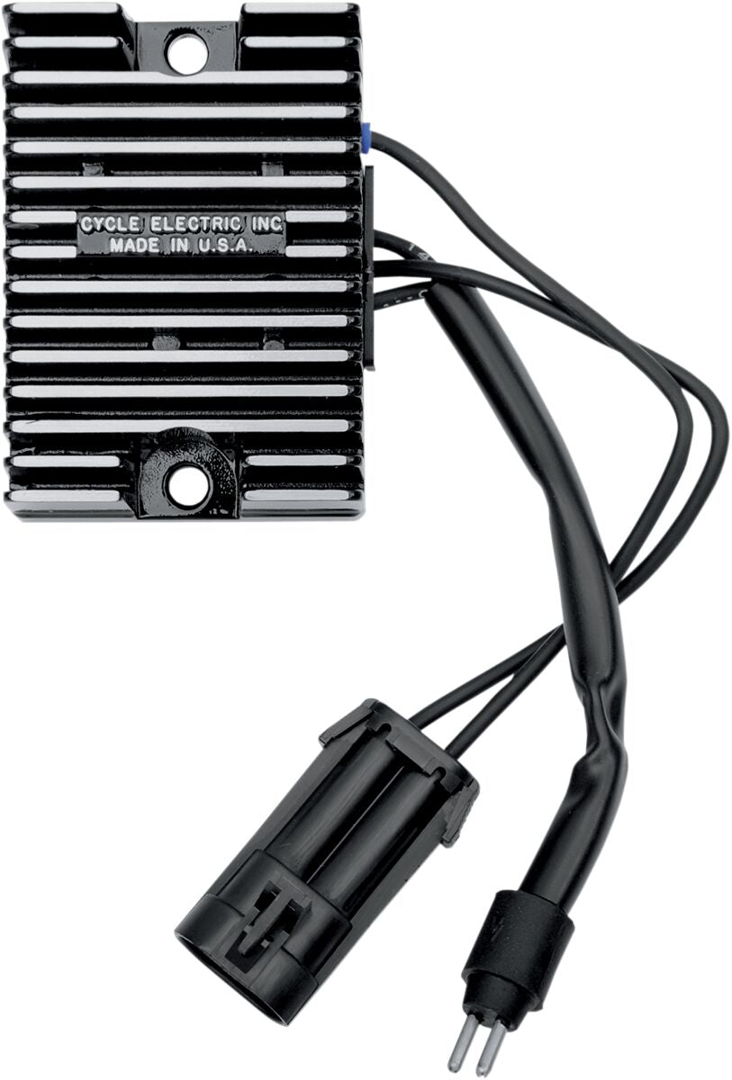 Rectifying RegulatorControls voltage on Harley-Davidson and Buell alternators, unlike other rectifiers or regulators that dump to ground and cause maximum stator current and higher temperatures Cycle Electric rectifying regulators block current to control voltage; this reduces stator current, resulting in low temperature and less drag on the motor, which means more efficient operation Made in the USA Harley Davidson XL 1200 C 2004-2006 Harley Davidson XL 1200 L 2006 Harley Davidson XL 1200 R 2004-2006 Harley Davidson XL 883 2004-2006 Harley Davidson XL 883 C 2004-2006 Harley Davidson XL 883 L 2005-2006 Harley Davidson XL 883 R 2004-2006