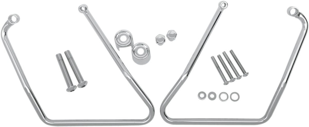 Chrome Saddlebag Support BracketsChrome-plated steel brackets hold throw-over saddlebags away from brake caliper and swingarm Fasten to shock absorber upper studs or fender struts All necessary mounting hardware included; sold in pairs Not compatible with OEM detachable sissy bar/luggage rack. Harley Davidson XL 1200 C 1996-1998 Harley Davidson XL 1200 C 1999-2003 Harley Davidson XL 1200 S 1996-1998 Harley Davidson XL 1200 S 1999-2003 Harley Davidson XL 883 C 1998-1999 Harley Davidson XL 883 C 2000-2003 Harley Davidson XL 883 R 2002-2003 Harley Davidson XLH 1200 1994-1999 Harley Davidson XLH 1200 1996-1997 Harley Davidson XLH 1200 2000-2003 Harley Davidson XLH 883 1994-1995 Harley Davidson XLH 883 1994-1999 Harley Davidson XLH 883 2000-2003