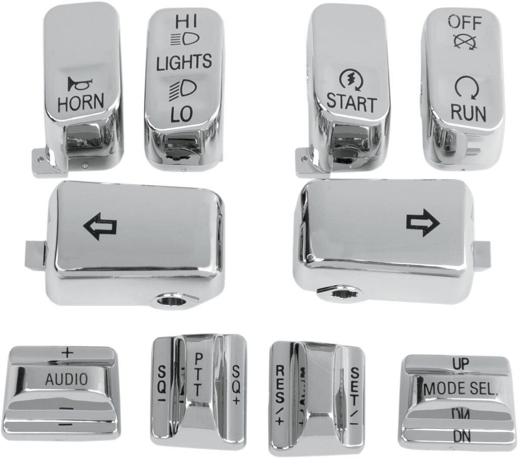 Switch Cap KitUpdate the black OEM switch caps without replacing the entire switch Quick, easy installation Radio and cruise control switches not included in 6-piece kit; must be ordered separately Harley Davidson FLHR 1340 1996-1998 Harley Davidson FLHR 1450 1999 Harley Davidson FLHR 1450 2000-2003 Harley Davidson FLHR 1450 2004-2006 Harley Davidson FLHR 1584 2007-2008 Harley Davidson FLHR 1584 2009-2011 Harley Davidson FLHR 1584 ABS 2008 Harley Davidson FLHR 1584 ABS 2009 Harley Davidson FLHR 1584 ABS 2010-2011 Harley Davidson FLHR 1690 2012-2013 Harley Davidson FLHR 1690 ABS 2012-2013 Harley Davidson FLHR 1690 ABS 2013 Harley Davidson FLHRC 1450 2004 Harley Davidson FLHRC 1584 2007-2008 Harley Davidson FLHRC 1584 2009-2010 Harley Davidson FLHRC 1584 ABS 2008 Harley Davidson FLHRC 1584 ABS 2009-2011 Harley Davidson FLHRC 1690 ABS 2011-2013 Harley Davidson FLHRCI 1340 EFI 1998 Harley Davidson FLHRCI 1450 EFI 1999 Harley Davidson FLHRCI 1450 EFI 2000-2006 Harley Davidson FLHRI 1340 EFI 1996-1997 Harley Davidson FLHRI 1450 EFI 1999-2003 Harley Davidson FLHRI 1450 EFI 2004-2006 Harley Davidson FLHRS 1450 2004-2006 Harley Davidson FLHRS 1584 2007 Harley Davidson FLHRSE3 1800 2007 Harley Davidson FLHRSE4 1800 ABS 2008 Harley Davidson FLHRSE5 1800 ABS 2013 Harley Davidson FLHRSEI 1550 2002 Harley Davidson FLHRSEI2 1690 2003 Harley Davidson FLHRSI 1450 EFI 2004-2006 Harley Davidson FLHT 1340 1996-1998 Harley Davidson FLHT 1450 1999 Harley Davidson FLHT 1450 2000-2003 Harley Davidson FLHT 1450 2004-2005 Harley Davidson FLHT 1584 2007-2008 Harley Davidson FLHT 1584 2009 Harley Davidson FLHT 1584 ABS 2008 Harley Davidson FLHT 1584 ABS 2009 Harley Davidson FLHTC 1340 1996-1998 Harley Davidson FLHTC 1450 2002-2004 Harley Davidson FLHTC 1450 2005 Harley Davidson FLHTC 1584 2007-2011 Harley Davidson FLHTC 1584 ABS 2009-2011 Harley Davidson FLHTC 1690 2012-2013 Harley Davidson FLHTC 1690 ABS 2011 Harley Davidson FLHTC 1690 ABS 2012 Harley Davidson FLHTC 1690 ABS 2013 Harley Davidson FLHTCI 1340 EFI 1996-1998 Harley Davidson FLHTCI 1450 EFI 1999-2006 Harley Davidson FLHTCI 1450 EFI 2004 Harley Davidson FLHTCSE2 1690 EFI 2005 Harley Davidson FLHTCU 1340 1996-1997 Harley Davidson FLHTCU 1584 2007 Harley Davidson FLHTCU 1584 2009 Harley Davidson FLHTCU 1584 2010-2011 Harley Davidson FLHTCU 1584 ABS 2008 Harley Davidson FLHTCU 1584 ABS 2009-2011 Harley Davidson FLHTCU 1690 2012-2013 Harley Davidson FLHTCU 1690 ABS 2012-2013 Harley Davidson FLHTCUI 1340 EFI 1996-1998 Harley Davidson FLHTCUI 1450 EFI 1999-2000 Harley Davidson FLHTCUI 1450 EFI 2001-2006 Harley Davidson FLHTCUSE 1690 2006 Harley Davidson FLHTCUSE2 1800 2007 Harley Davidson FLHTCUSE3 1800 ABS 2008 Harley Davidson FLHTCUSE4 1800 ABS 2009 Harley Davidson FLHTCUSE5 1800 ABS 2010 Harley Davidson FLHTCUSE6 1800 ABS 2011 Harley Davidson FLHTCUSE7 1800 ABS 2012 Harley Davidson FLHTCUSE8 1800 ABS 2013 Harley Davidson FLHTCUTG 1690 2010-2013 Harley Davidson FLHTCUTG 1690 2013 Harley Davidson FLHTI 1450 EFI 2004-2006 Harley Davidson FLHTK 1584 ABS 2010-2011 Harley Davidson FLHTK 1690 ABS 2011-2013 Harley Davidson FLHTK 1690 ABS 2013 Harley Davidson FLHX 1450 2006 Harley Davidson FLHX 1584 2007-2008 Harley Davidson FLHX 1584 2009-2011 Harley Davidson FLHX 1584 ABS 2008 Harley Davidson FLHX 1584 ABS 2009-2011 Harley Davidson FLHX 1690 2011-2013 Harley Davidson FLHX 1690 ABS 2011-2013 Harley Davidson FLHXI 1450 EFI 2006 Harley Davidson FLHXSE 1800 ABS 2010 Harley Davidson FLHXSE2 1800 ABS 2011 Harley Davidson FLHXSE3 1800 ABS 2012 Harley Davidson FLHXXX 1690 2010-2011 Harley Davidson FLTCU 1340 1996 Harley Davidson FLTR 1450 1999-2003 Harley Davidson FLTR 1584 2007-2010 Harley Davidson FLTR 1584 ABS 2009-2010 Harley Davidson FLTRI 1340 EFI 1998 Harley Davidson FLTRI 1450 EFI 1999-2006 Harley Davidson FLTRSE3 1800 ABS 2009 Harley Davidson FLTRSEI 1550 2000 Harley Davidson FLTRSEI2 1550 2001 Harley Davidson FLTRU 1584 ABS 2011 Harley Davidson FLTRU 1690 ABS 2011-2013 Harley Davidson FLTRUSE 1800 ABS 2011 Harley Davidson FLTRX 1584 2011 Harley Davidson FLTRX 1584 ABS 2011 Harley Davidson FLTRX 1690 2011-2013 Harley Davidson FLTRX 1690 ABS 2011-2013 Harley Davidson FLTRXSE 1800 ABS 2012 Harley Davidson FLTRXSE2 1800 ABS 2013