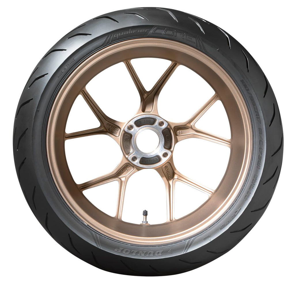Qualifier Core TireSupersport True to Dunlop's long-standing reputation in sports tyres, the Qualifier Core delivers the essence of hypersport tyres: Excellent grip, dynamic handling and great ride feedback. Modern technology and innovative production methods enable you to experience levels of performance previously limited only to high-end tyres. HCT technology helps the durable tread compound deliver incredible performance Section profiles have been developed using DFF technology for exceptional handling First generation SportSmart-inspired design delivers balanced tread stiffness, optimised footprint, consistent wear and excellent wet performance Aprilia RSV 1000 1998-2003 Aprilia RSV 1000 R 2000-2009 Aprilia RSV 1000 SP 1999 Aprilia RSV4 1000 2009-2013 Aprilia RSV4 1000 2011 Aprilia RSV4 1000 ABS 2013-2014 Aprilia RSV4 1000 RF ABS 2015-2016 Aprilia TUONO 1000 R 2006-2010 BMW K 1600 GT ABS 2019 BMW K 1600 GTL ABS 2019 BMW R 1200 RS ABS 2019 BMW S 1000 RR 2010-2012 BMW S 1000 RR ABS 2010-2024 Ducati MONSTER 821 ABS 2014-2016 Yamaha MT-10 ABS 2016-2024 Yamaha MT-10 SP ABS 2017-2024 Yamaha YZF-R1 1000 1998-2023 Yamaha YZF-R1 1000 ABS 2015-2024 Yamaha YZF-R1 1000 GP 2012 Yamaha YZF-R1 1000 SP 2006