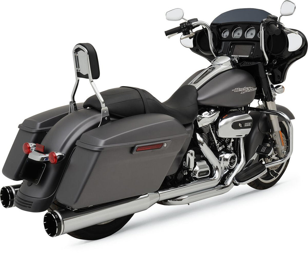 2-into-2 Dominator Exhaust SystemEnlarged interconnected headers make for improved horsepower and low-end torque 1-3/4” to 1-7/8” high-flow 16-gauge stepped primary headers Features full 2” left side crossover and 4-1/2” muffler bodies with 2” inlets 2-1/2”, 220°, 16-gauge heat shields Removable baffles are wrapped in stainless steel wool and high-temp fiberglass for a rich mellow tone 18 mm and 12 mm O2 bungs welded into the primaries Heavy-duty, AccuSeal® reaction-block header-to-muffler clamps included Optional Ripper baffles boost low-end performance and enhance sound available separately Additional performance baffles are available separately Made in the U.S.A. Harley Davidson FLH 1868 ABS 2021 Harley Davidson FLHFB 1868 ABS 2023 Harley Davidson FLHR 1750 2019 Harley Davidson FLHR 1750 2017-2018 Harley Davidson FLHR 1750 ABS 2017-2022 Harley Davidson FLHRC 1750 ABS 2017-2019 Harley Davidson FLHRXS 1750 ABS 2017-2018 Harley Davidson FLHRXS 1868 ABS 2019-2024 Harley Davidson FLHT 1750 ABS 2019-2022 Harley Davidson FLHTCU 1750 ABS 2017-2019 Harley Davidson FLHTK 1750 ABS 2017-2018 Harley Davidson FLHTK 1868 ABS 2019-2024 Harley Davidson FLHTKL 1750 ABS 2017-2018 Harley Davidson FLHTKL 1868 ABS 2019 Harley Davidson FLHTKSE 1868 ABS 2017 Harley Davidson FLHTKSE 1923 ABS 2018-2021 Harley Davidson FLHX 1750 2019 Harley Davidson FLHX 1750 2017-2018 Harley Davidson FLHX 1750 ABS 2017-2023 Harley Davidson FLHX 1923 ABS 2024 Harley Davidson FLHXS 1750 ABS 2017-2018 Harley Davidson FLHXS 1868 ABS 2019-2023 Harley Davidson FLHXSE 1868 ABS 2017 Harley Davidson FLHXSE 1923 ABS 2018-2022 Harley Davidson FLHXSE 1977 ABS 2023-2024 Harley Davidson FLHXST 1923 ABS 2022-2023 Harley Davidson FLTRK 1868 ABS 2020-2024 Harley Davidson FLTRKSE 1923 ABS 2022-2023 Harley Davidson FLTRU 1750 ABS 2017-2018 Harley Davidson FLTRU 1868 ABS 2019 Harley Davidson FLTRX 1750 2017-2018 Harley Davidson FLTRX 1750 2019 Harley Davidson FLTRX 1750 ABS 2017-2023 Harley Davidson FLTRXS 1750 ABS 2017-2018 Harley Davidson FLTRXS 1868 ABS 2019-2023 Harley Davidson FLTRXSE 1923 ABS 2018-2022 Harley Davidson FLTRXSE 1977 ABS 2023-2024 Harley Davidson FLTRXST 1923 ABS 2022-2023 Harley Davidson FLTRXSTSE 1977 ABS 2024