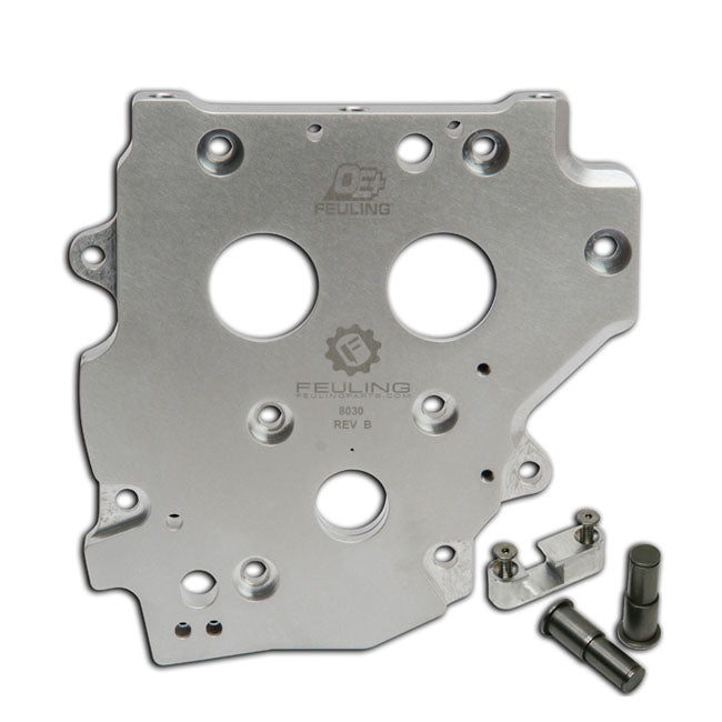 NOTE : This camplate is designed for the original fitment mechanical spring tensioners. For hydraulic conversion camplate see part 566082, 707241 FEULING OE+ stock replacement billet camplates are manufactured from 6061 aluminum providing increased rigidity and machined to FEULING's high tolerance standards. The pressure relief valve and spring are pre-set, matched and seated by FEULING with a full pop off pressure of 50-60 psi. OE+ camplates are a direct bolt in replacement and will accept the factory oil pump. As with all FEULING components, the competitively priced OE+ camplates are designed and manufactured to the highest standard of quality with proven FEULING performance. Includes bearing retainer plate, tensioner pins & chain guide tower, for use with'99-'06 style oil pumps, compatible FEULING oil pumps: 566075, 707377, 707381