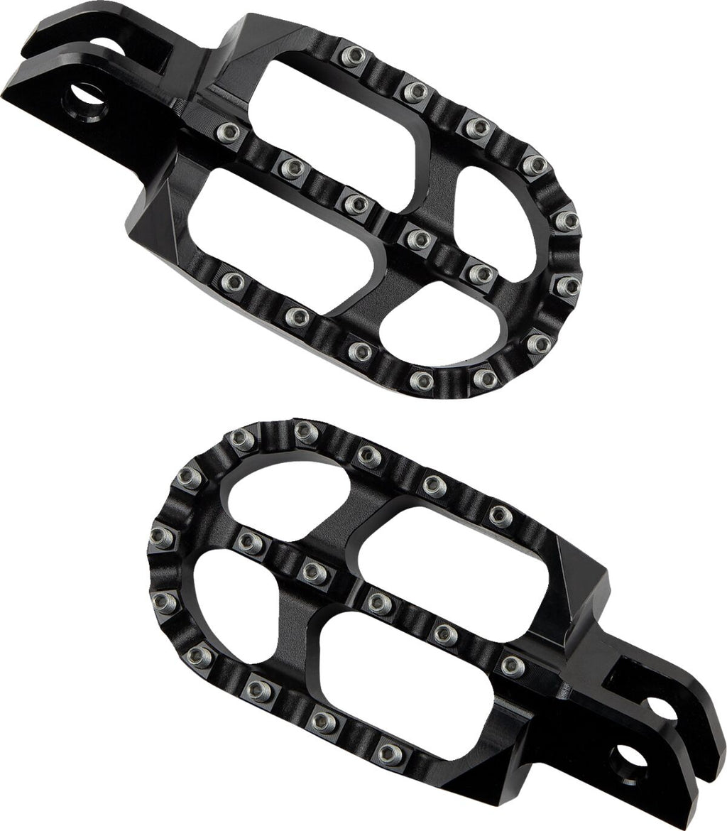 • Footpegs are sold in pairs and are wider, and more stable, than the stock steel units