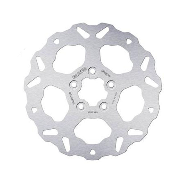 Galfer Brake Rotor Wave Fixed 292X5Mm For Rear: 92-99 Big Twin 292mm (11.5") OD, 5mm thick, 50mm ID, 9.5mm (3/8") counterbored mount holes, 3.25" BCD (Bolt Circle Diameter). Mount style G. OEM replacement reference 41789-92. Galfer Disc Wave® discs are the most popular. Thanks to their larger brake track perimeter, they enhance cooling capacity and allow for even wear of the brake pads. They undergo a cathodic electrocoating treatment to prevent corrosion. In the case of floating discs, they offer an improvement in weight reduction, and there are two variants: those with a high-strength anodized aluminum center (7075 T6 - 6082 T6) and those with a steel core (AISI 420). Rear: 92-99 Big Twin, XL Sportster (Excl. all FLT) (NU)