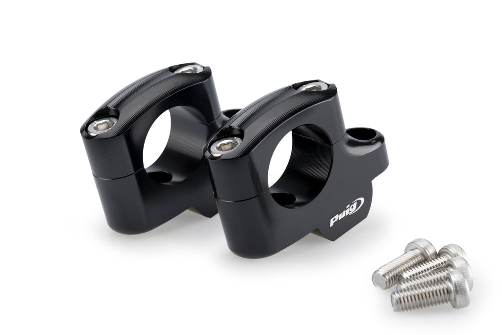 Improve your motorcycle’s riding experience with the new Puig risers. Machined from billet aluminium in anodised colours it will work perfectly to raise the position of the handlebars of your motorcycle improving your position and comfort while riding.