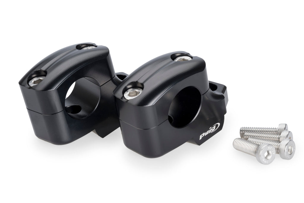 Improve motorcycle ergonomics with Puig Pullback Handlebar Risers. Made of high-quality aluminium, they raise the handlebar by 25mm and move it 16mm closer to the rider, reducing fatigue and improving comfort and manoeuvrability. Suitable for 29mm handlebars.