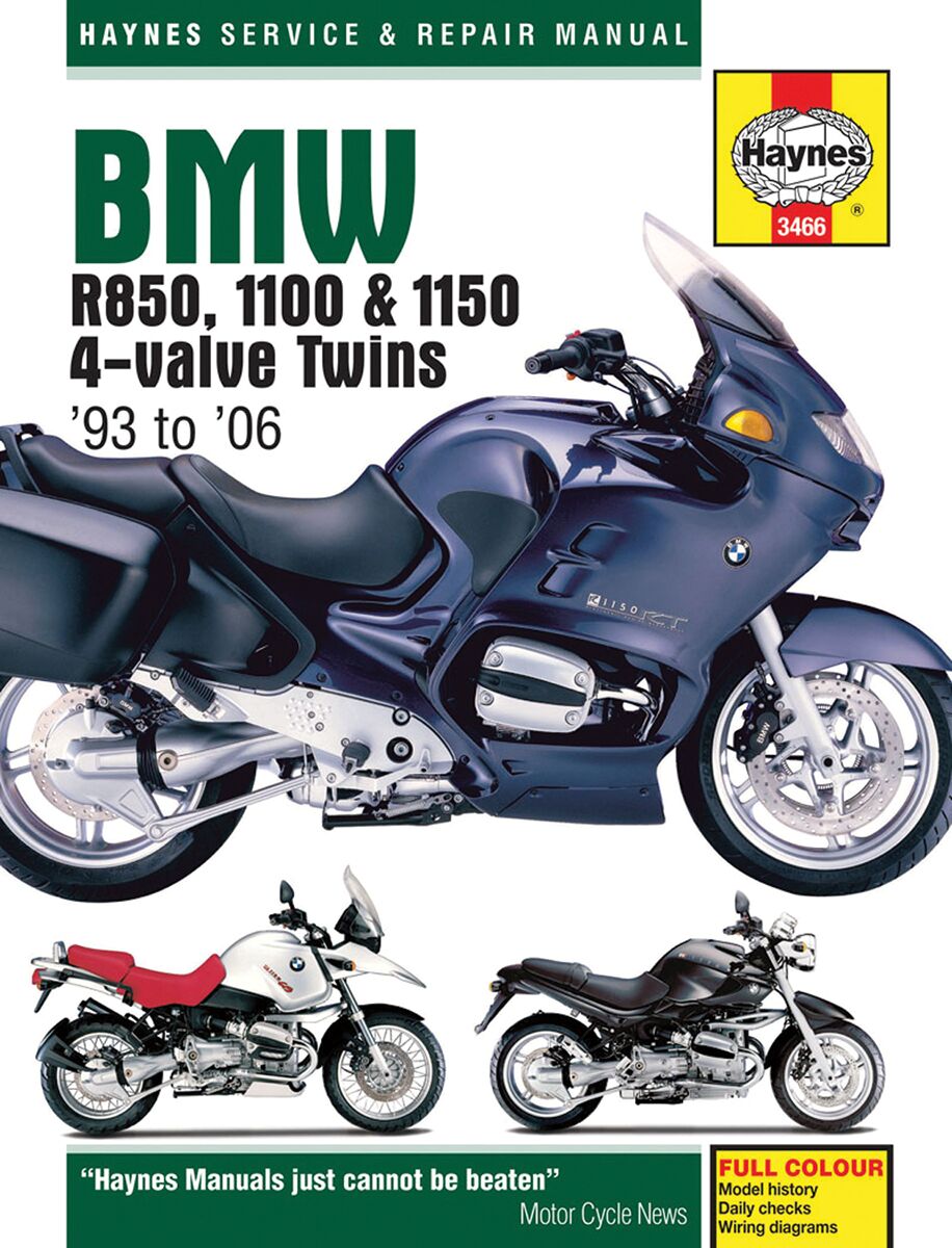 Motorcycle Repair ManualEvery Haynes manual is based on a complete teardown and then a step-by-step rebuild Everything is covered, from a complete engine rebuild to changing an oil filter BMW R 1100 GS 1993-1999 BMW R 1100 GS ABS 1998 BMW R 1100 R 1995-2001 BMW R 1100 R ABS 1998-2001 BMW R 1100 RS 1993-2001 BMW R 1100 RS ABS 1998-2001 BMW R 1100 RT 1996-2001 BMW R 1100 S 1998-2005 BMW R 1100 S ABS 1998-2005 BMW R 1150 GS 2000-2005 BMW R 1150 GS ABS 2000-2005 BMW R 1150 R 2003-2006 BMW R 1150 R ABS 2003-2006 BMW R 1150 RS 2002-2005 BMW R 1150 RS ABS 2002-2005 BMW R 1150 RT 2002-2005 BMW R 850 GS 1999-2000 BMW R 850 GS ABS 1999-2000 BMW R 850 R 1995-2006 BMW R 850 R ABS 1998-2006