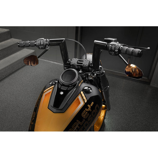 Killer Custom Monarch 2 Inch Fat Bar 6 Inch Rise For 82-24 H-D mech 993605 With a massive 2" outside diameter. For models with 1" handlebar clamp diameter and 1" handlebar grip diameter. The bolder, narrower alternative to the 'Killer Bull' handlebars, giving a more aggressive stance. Designed for the ultimate blend of style and comfort. Integrates seamlessly with 1-1/4" risers and both throttle cables and e-throttle (throttle by wire) setups. - 2" (50mm) outside diameter - Stock 1-1/4" (32mm) handlebar clamp diameter - Stock 1" (25.4mm) mm grip diameter - Throttle cable and e-throttle compatible - 5 laser cut wiring holes - Gloss black powder coated steel / stainless steel Note: Not compatible with hydraulic clutch master cylinders. 82-24 H-D mech. & e-throttle (excl. 88-11 Springers) with 1" I.D. risers. Excl. models with hydraulic clutch master cylinder