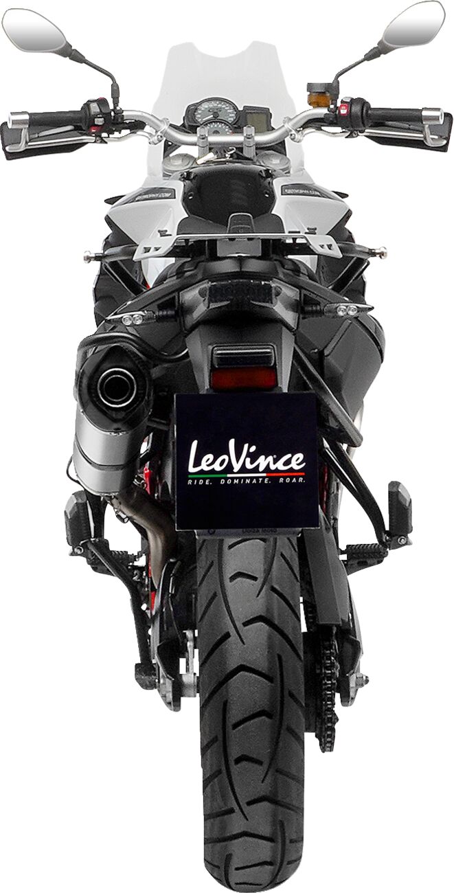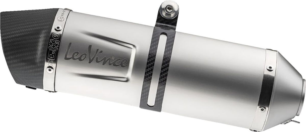 LV One Evo Stainless Steel Slip-On MufflerLV ONE EVO Stainless Steel is the synthesis between tradition and modernity. It combines the LeoVince classic style looks and innovation in the research of the most performing and lightweight materials. Features AISI 304 stainless steel sleeve Full carbon or stainless steel end cap High temperature resistant packing (1,650 °F) Adjustable full carbon fastening strap Laser etched LeoVince logo BMW F 700 GS ABS 2017 BMW F 800 GS ABS 2017-2019
