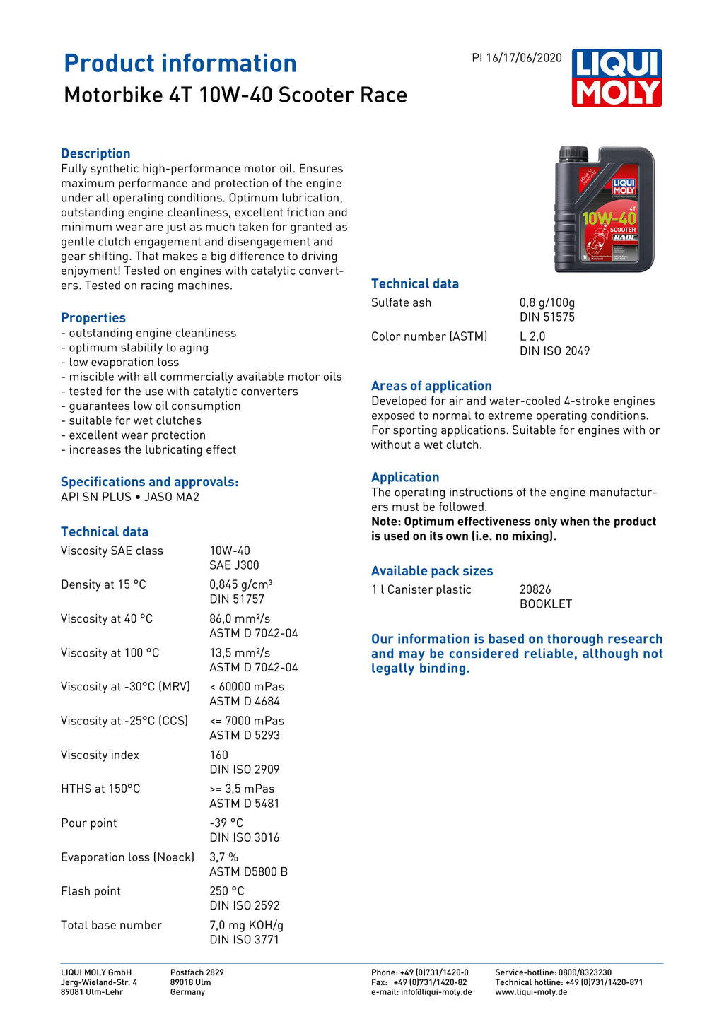 Fully synthetic high-performance motor oil. Ensures maximum performance and protection of the engine under all operating conditions. Optimum lubrication, outstanding engine cleanliness, excellent friction and minimum wear are just as much taken for granted as gentle clutch engagement and disengagement and gear shifting. That makes a big difference to driving enjoyment! Tested on engines with catalytic converters. Tested on racing machines.