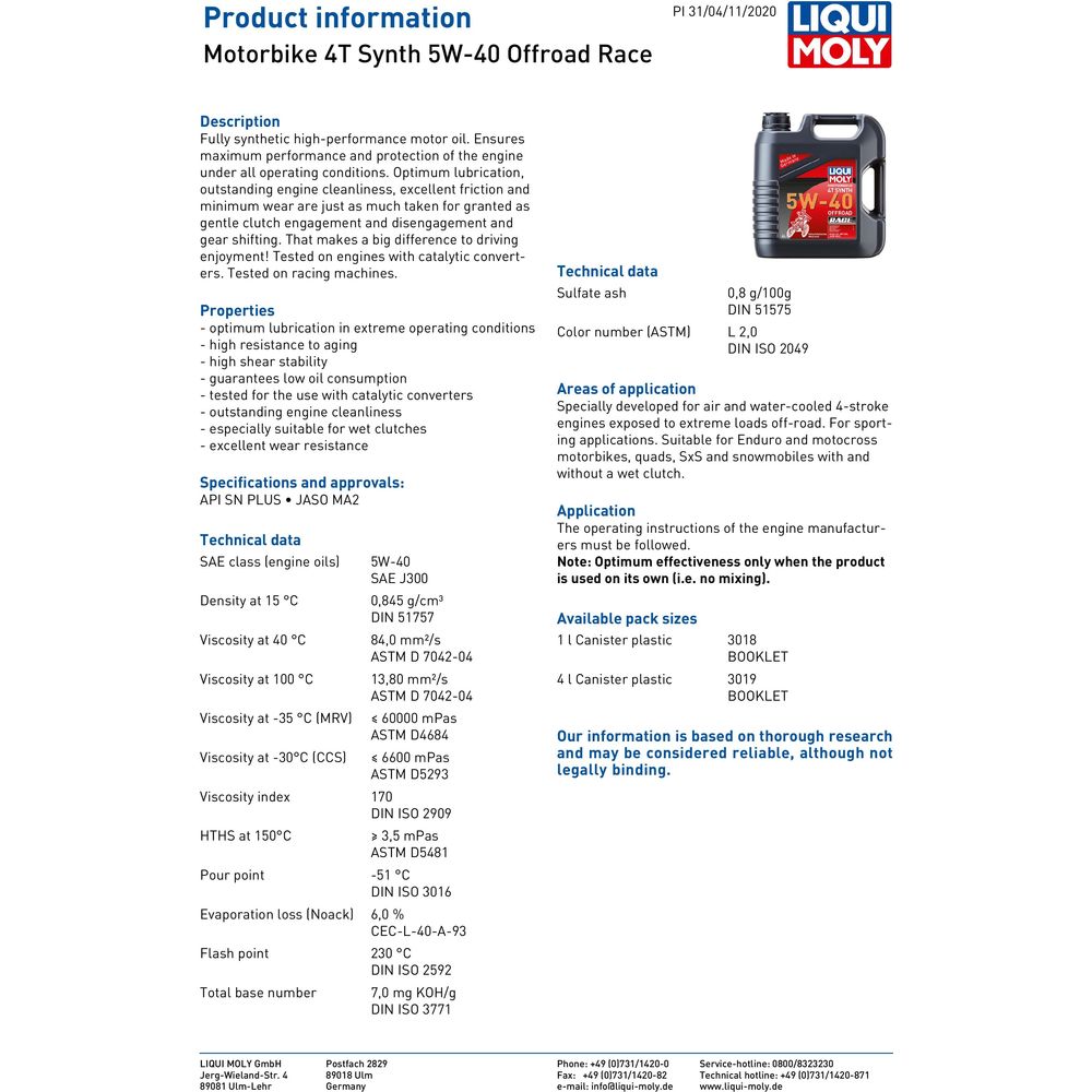 Specially developed for air and water-cooled 4-stroke engines exposed to extreme loads off-road. For sporting applications. Suitable for Enduro and motocross motorbikes, quads, SxS and snowmobiles with and without a wet clutch.