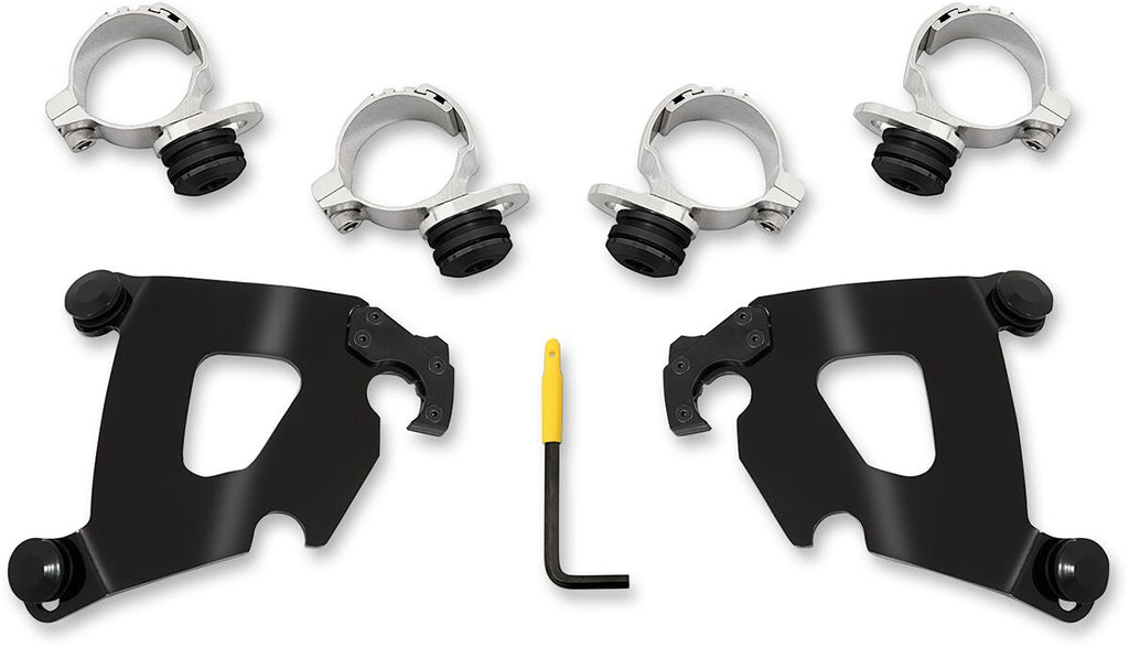 Cafe Fairing Trigger-Lock Mounting HardwareModel specific no-hassle installation, then on-off without tools A pair of glass-filled nylon latches lock it down until the spring loaded "Trigger-Locks" are intentionally disengaged Made exclusively of electrocoated aluminum and stainless steel, with stainless steel fasteners Anchoring hardware is the same for all windshields and fairings for each bike Made in the U.S.A. - Made in Memphis! Indian SCOUT 60 ABS 2016-2024 Indian SCOUT 69 ABS 2015-2024